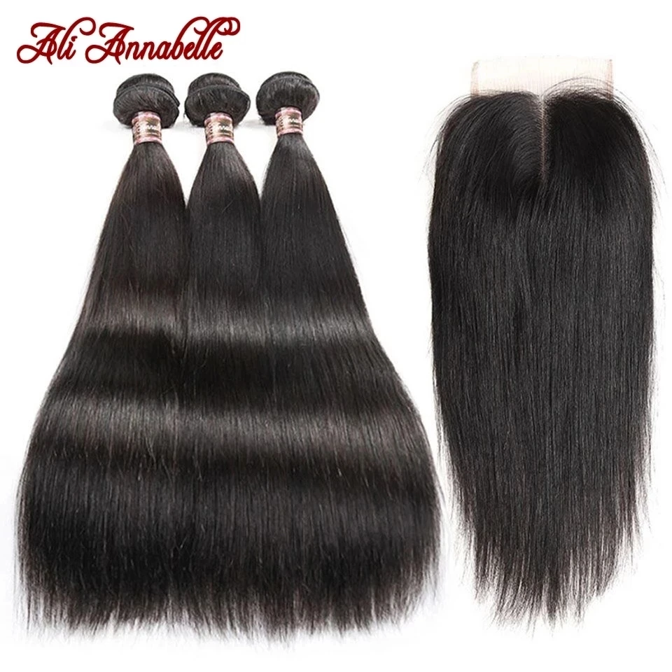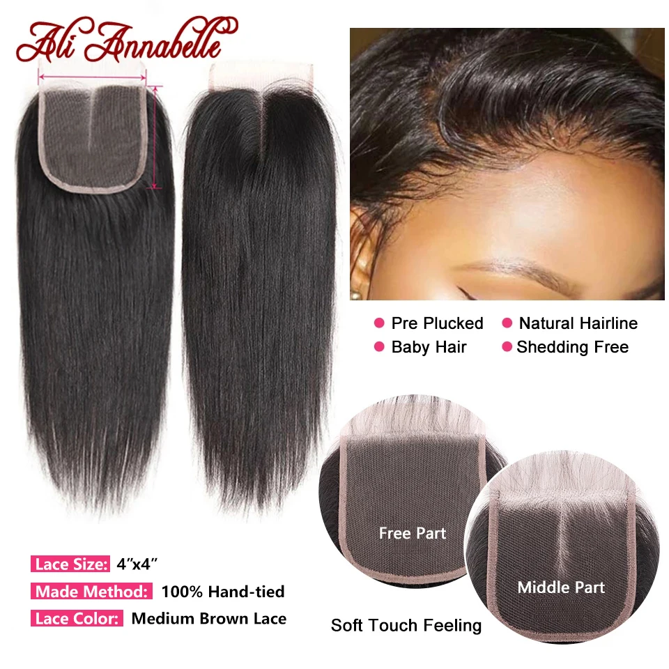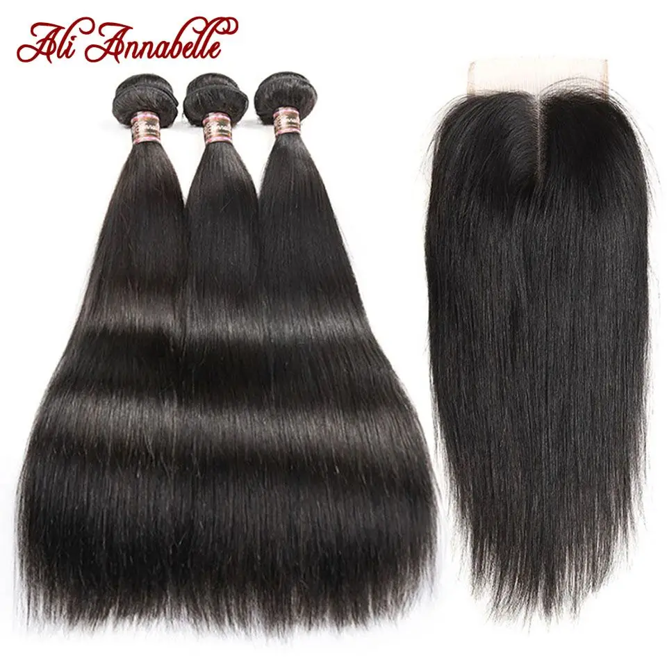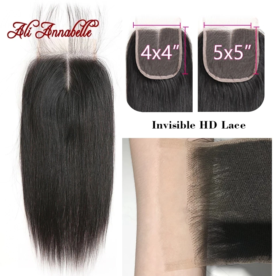 Али ANNABELLE прямые волосы пряди с 5x5 закрытие человеческие волосы пряди с Закрытие 4x4 HD кружева бразильские волосы, волнистые пряди