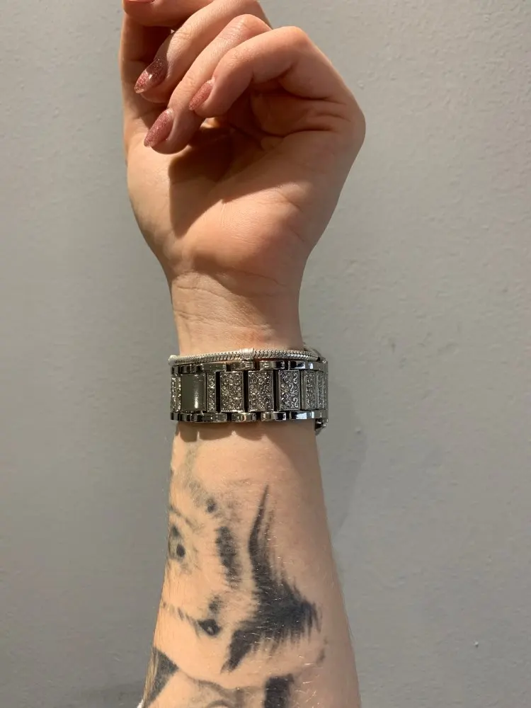 Товар пришёл быстро. Очень большой минус - застёжка! Она просто намертво замыкается и просто пальцами не открыть, приходится использовать железные подручные материалы и дополнительного человека, самостоятельно не получилось - все ногти обломала. Очень большой минус ибо постоянно так открывать невозможно! Сам материал тоже особо не радует - сильно блестит, что дешевит браслет. Плюс только за быструю доставку