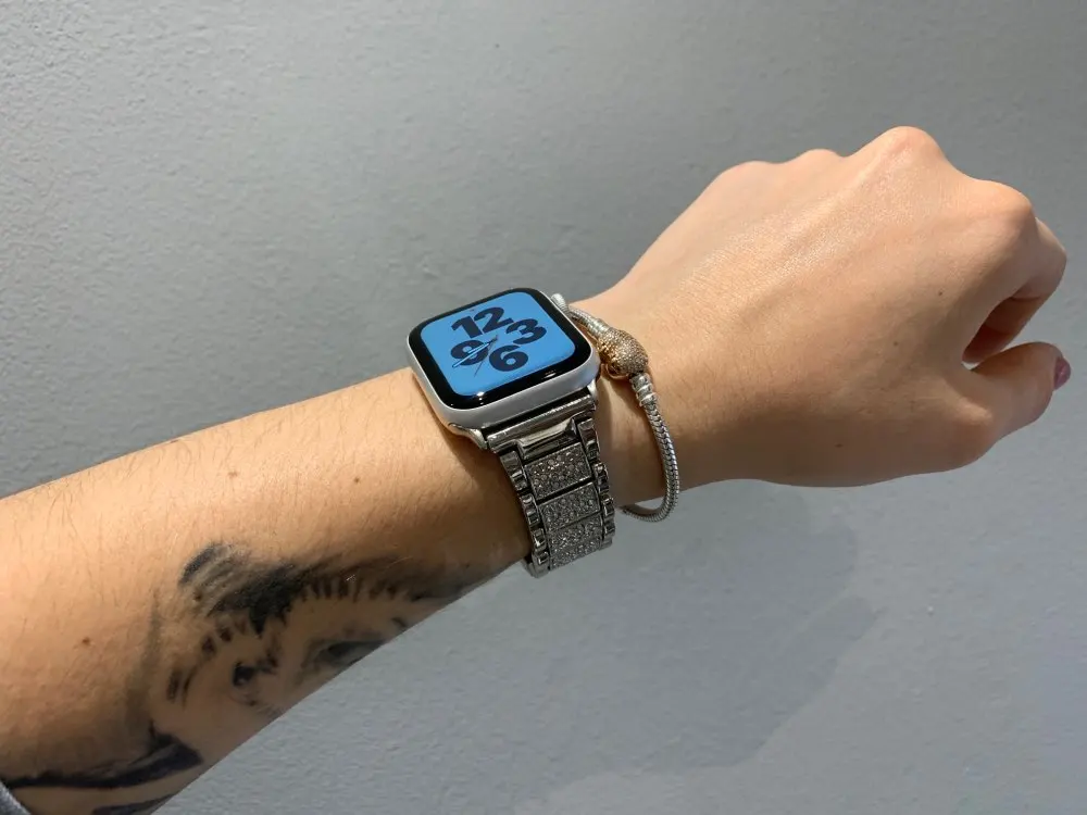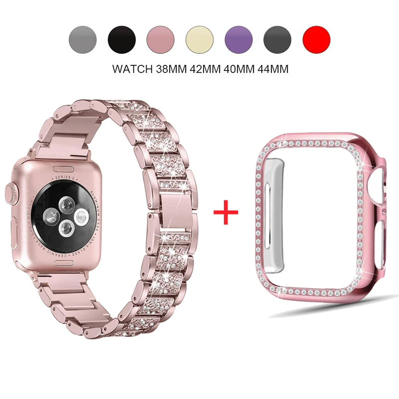 Алмазный чехол с ремешком для ремешка Apple Watch 41 мм, 45 мм, 40 мм, 44 мм, браслет из нержавеющей стали для iWatch серии 7, 6, SE, 5, 4, 3, Correa