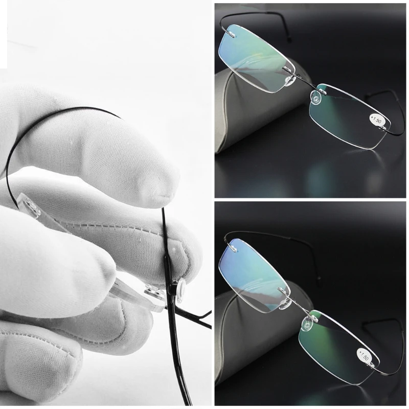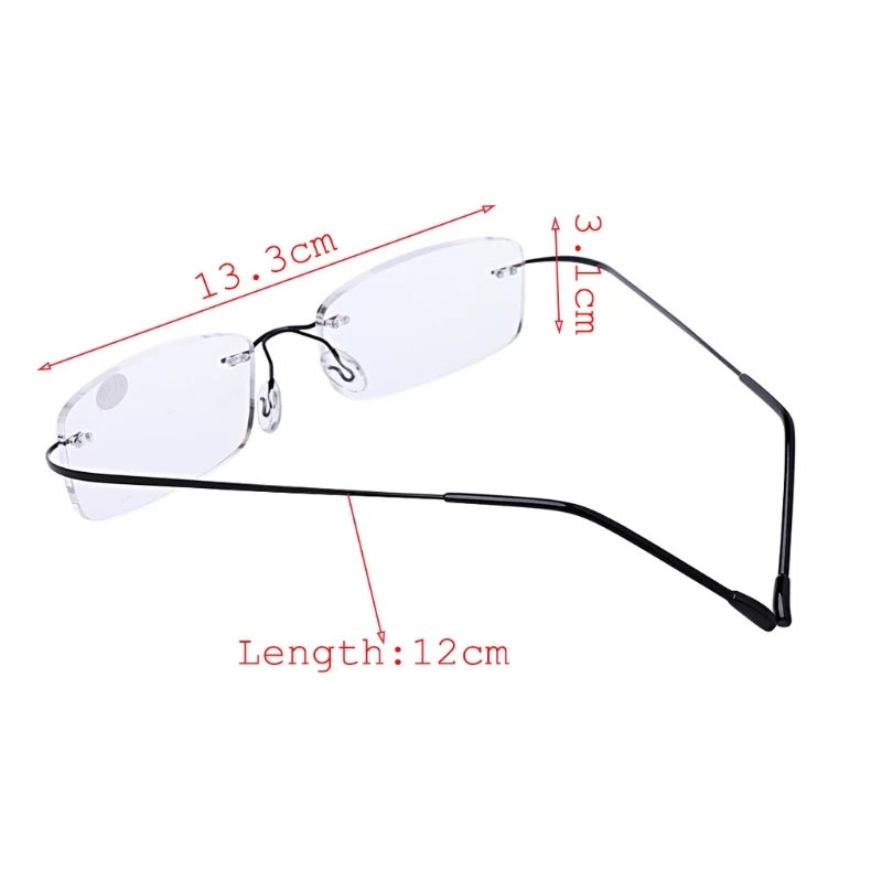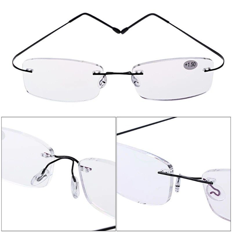 Прямоугольные очки без оправы, Сверхлегкие титановые очки, черныесеребристые очки, + 1,0+ 1,5+ 2,0+ 2,5+ 3,0+ 3,5