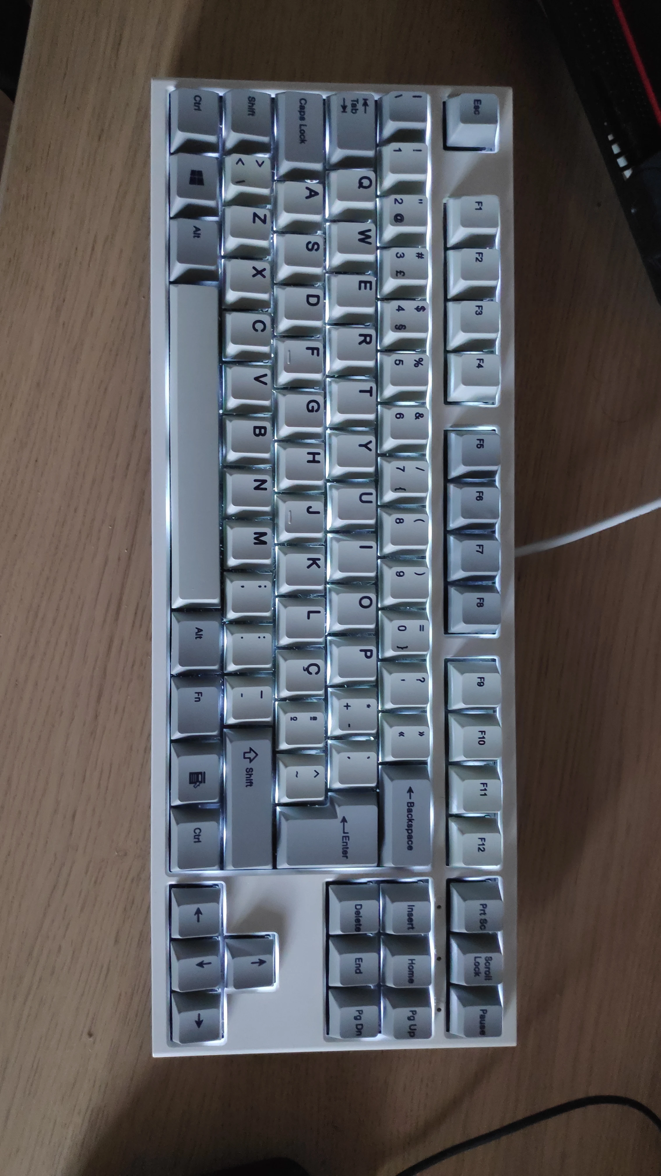 Montado en un GK61. Teclas pbt de buenísima calidad, son de perfil bajo, muy agradable al tacto, no tienen ningún tipo de defecto en cuanto a serigrafía o en los cortes. 100% recomendadas. Dan un estética retro preciosa, muy 80’s que hacer recordar a aquellos teclados IBM de la época.
