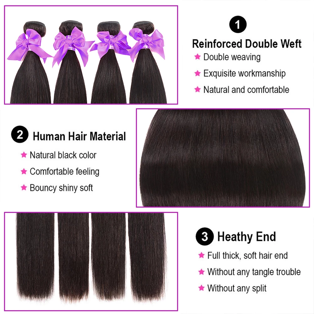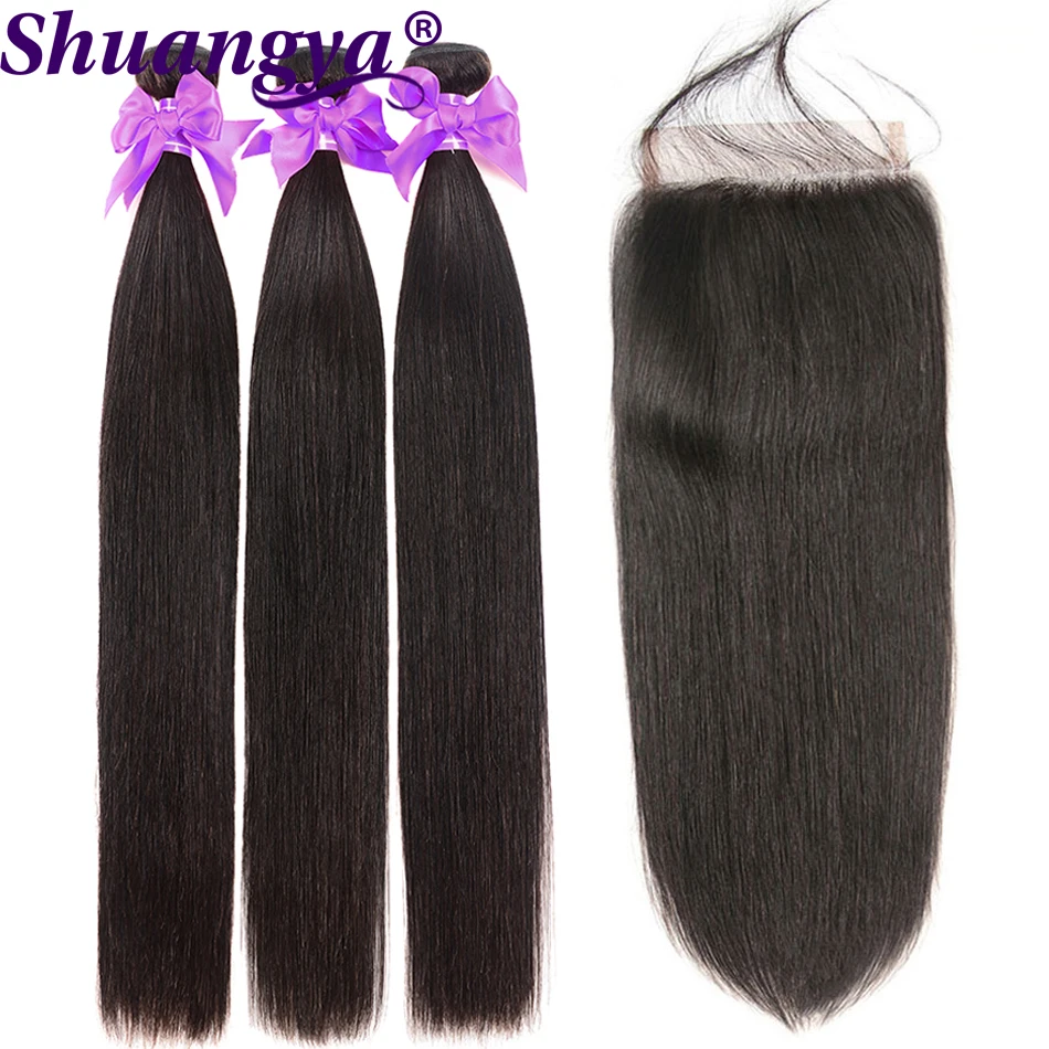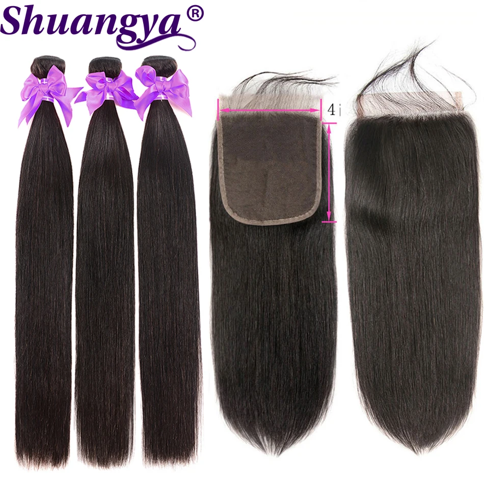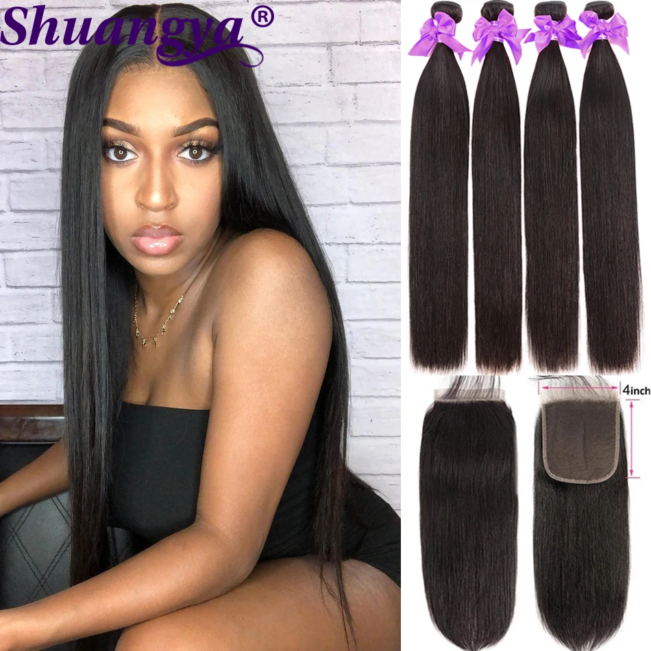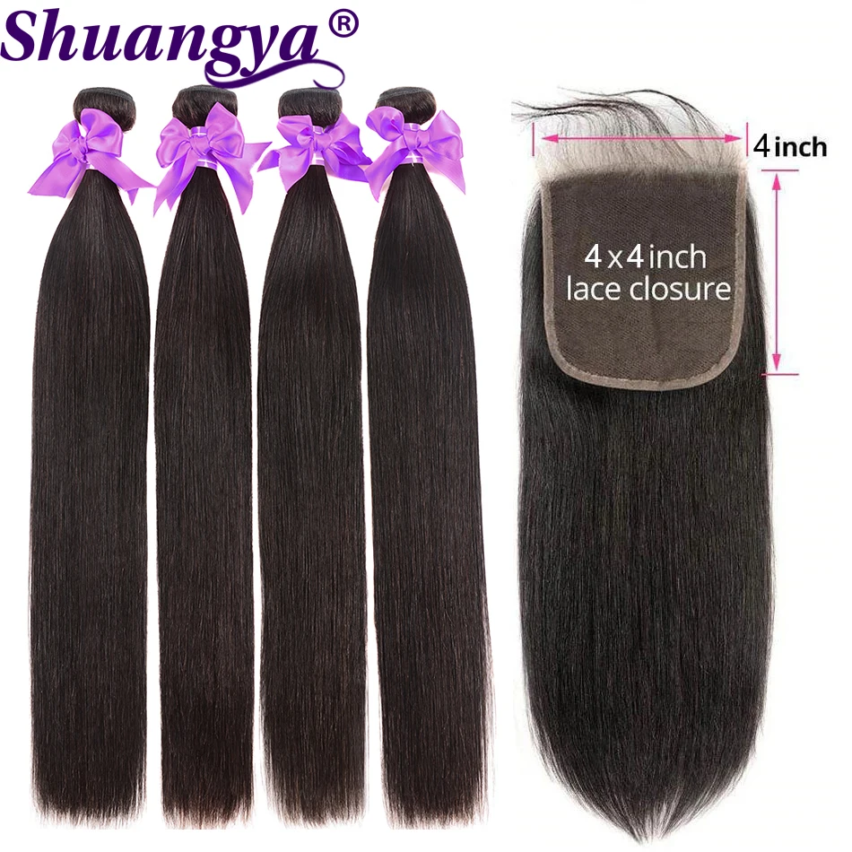 Бразильские прямые волосы пучки волос с закрытием 4x4 застежка с пучки волос Remy 100% человеческие волосы пучки волос с закрытием наращивание волос