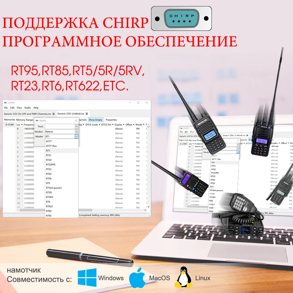 Отличная рация. Пришла очень быстро, была залочена на любительские диапазоны, раскрыл по видео Радиочифа. Кабель программирования в отдельном пакете, драйвер на win10 встал автоматически, программу скачал и родную, и Chirp - обе работают нормально. Родную программу надо качать для варианта "RT95 VOX", и так же выбирать модель в Chirp - именно VOX. Что не понравилось - громкость на 1 очень маленькая, почти не слышно, а на 2 уже сильно громко для тихой комнаты.