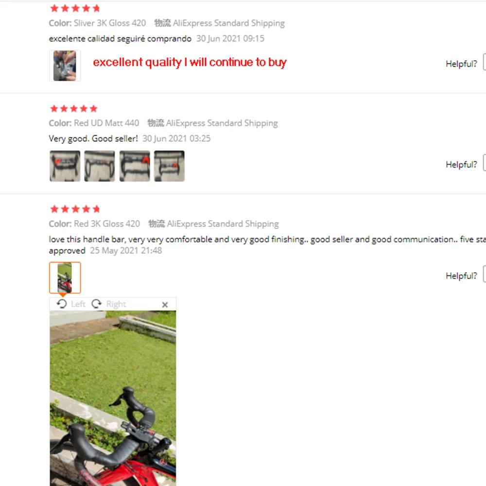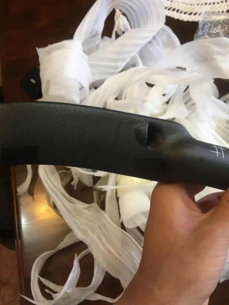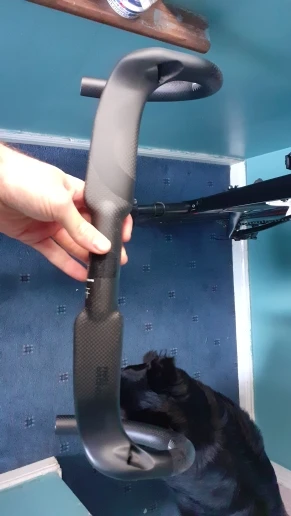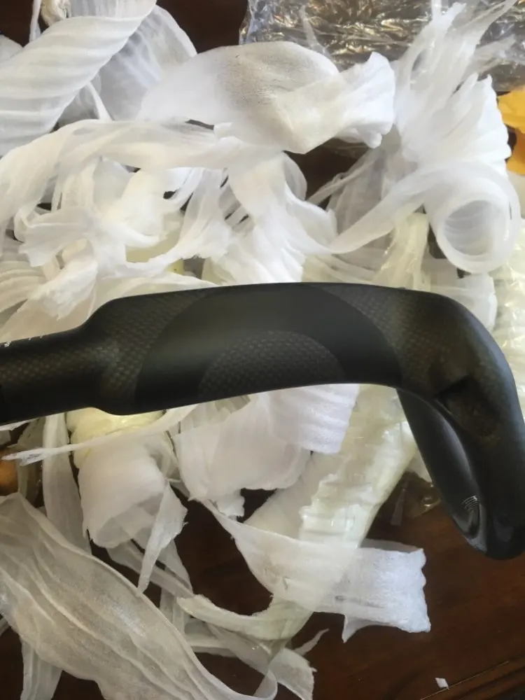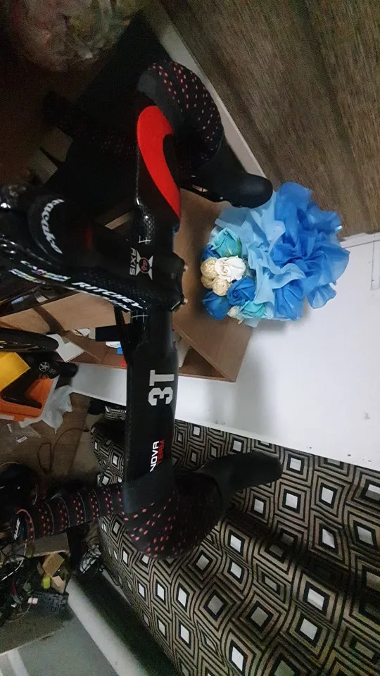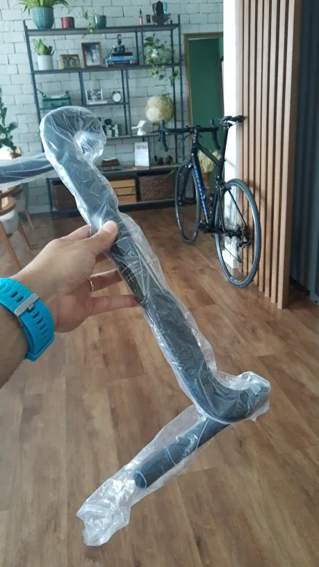 Руль прибыл в Bucharest примерно через 2 месяца. После наблюдения за отслеживанием, кажется, самые задержки при обработке, например, посылка занимает очень мало времени, чтобы прибыть в Европу, но там очень большие задержки при переходе из одной страны в другую. Форма брусков очень хорошая, на ощупь очень эргономичная, и я наложил ленту только на рожки, оставляя стволовую область открытой, чтобы увидеть углеродное переплетение. Покрытие поверхности приятное на ощупь и матовое. Продукт отличный, но я рекомендую производителю обращать больше внимания на узор переплетения углерода, особенно в узоре переплетения 3k и прозрачном пальто, где вы можете четко видеть переплетение. Некоторые секции выглядят так, как будто они прилипают вместе с клеем вместо униформы, что вызывает у меня вопросы о долговечности. Также отверстия кабеля могут быть более однородными и завершенными.