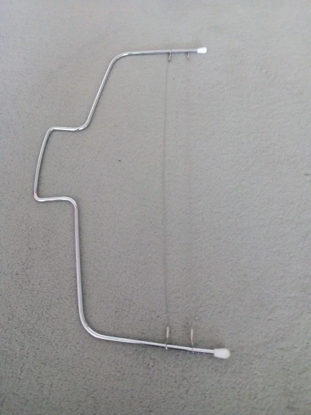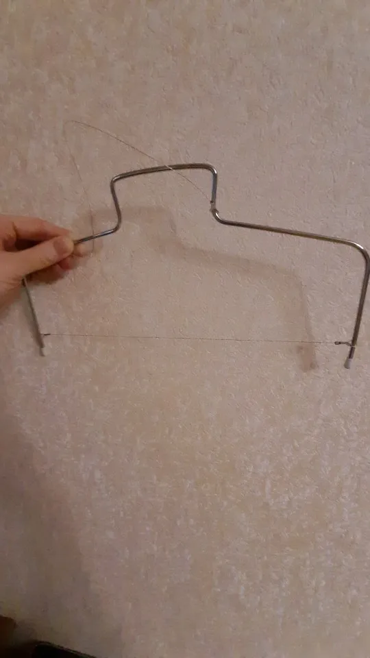 Заказ пришел быстро, в Киев за 13 дней, доставили Новой Почтой. Струна на вид хорошая, в работе пока не пробовала. Но конструкция такая, что если нижняя струна хорошо натянута, то верхняя очень ослаблена становится, ровно ей разрезать не получится. Сами струны не регулируются, можно только растянуть ножки руками. Потому работать наверное только одной струной буду.