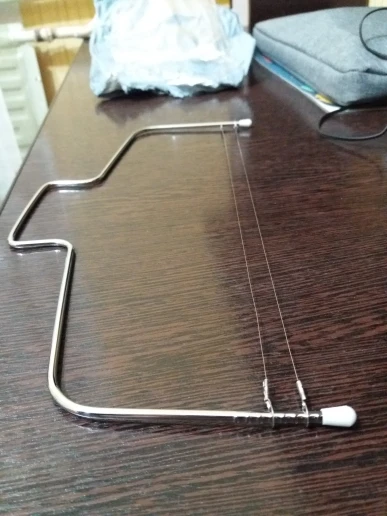Этим прибором можно только суфле разрезать. С обыкновенным бисквитом не справился. Струны натянуты слабо, не режут совсем. Не рекомендую.