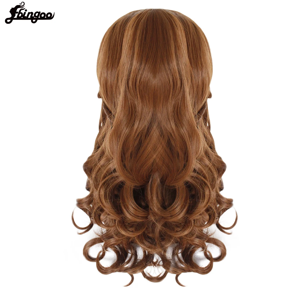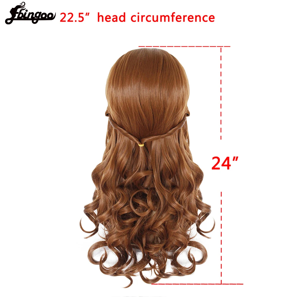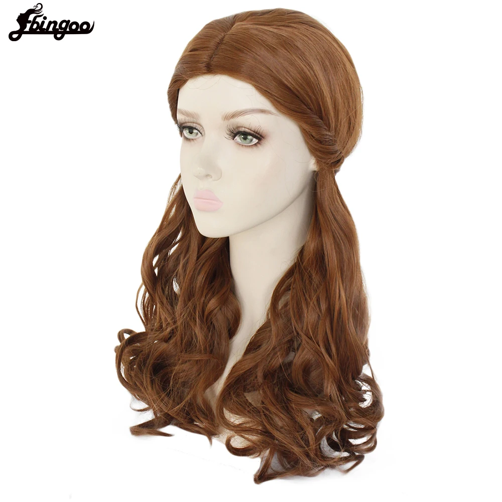 Ebingoo клипса Ponytai + Кепка для волос + Красавица и Чудовище натуральный коричневый длинный волнистый волосы Белль Синтетический Косплей парик для костюма на Хэллоуин