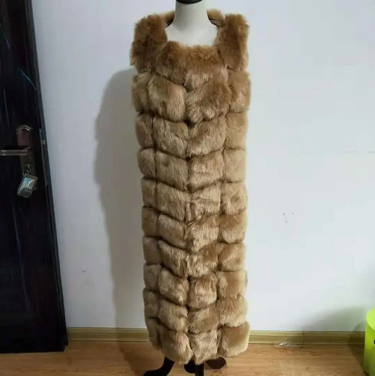 Длинное пушистое меховое пальто 8-10 шагов, зимняя женская Роскошная парка из искусственного лисьего меха, пушистая тонкая безрукавка из искусственного меха, женская верхняя одежда из искусственного меха