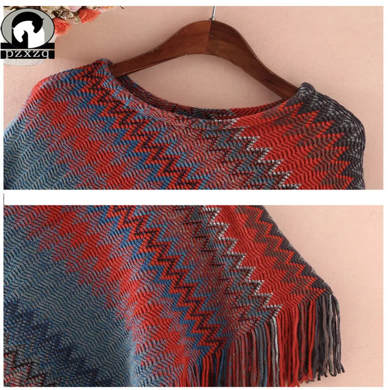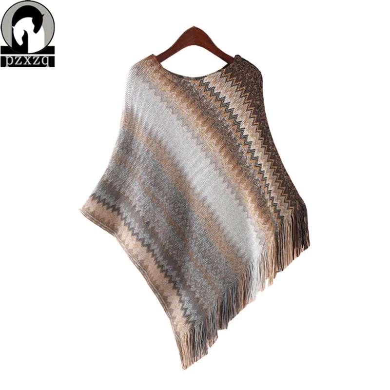 Женская вязаная накидка с рукавами летучая мышь, трикотажный Кейп-пончо с волнистым узором, джемпер для весны и зимы, 2019