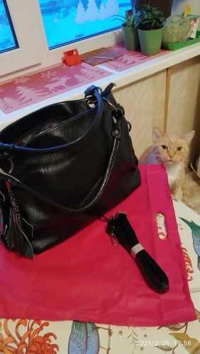 Офигенная сумочка, не ожидал что будет очень высокого качества за такие деньги. Мягкая и приятная на ощупь. Пахнет кожей. Думал за полторы тыщи придет из клеёнки. Но неожиданно хорошая. Такие в местных магазинах стоят 8 тысяч рублей. Если вам она понравилась внешне, берите даже не задумываясь, качество 10 из 10. Когда расспаковывал испугался, в пакете было розовое, думал положили не черную, а розовую, но оказалось это хлопчатобумажносинтетическая упаковочка в виде пакета и в ней черная сумочка. Отличный товар из настоящей кожи!