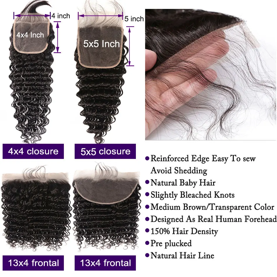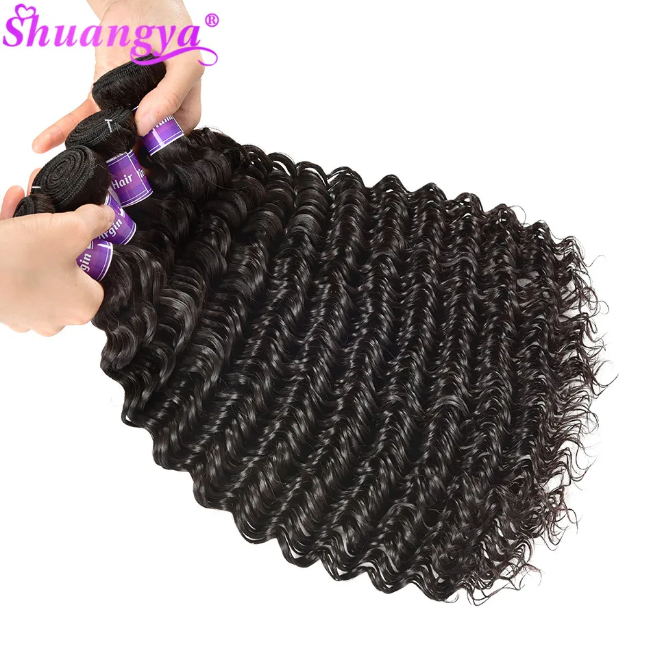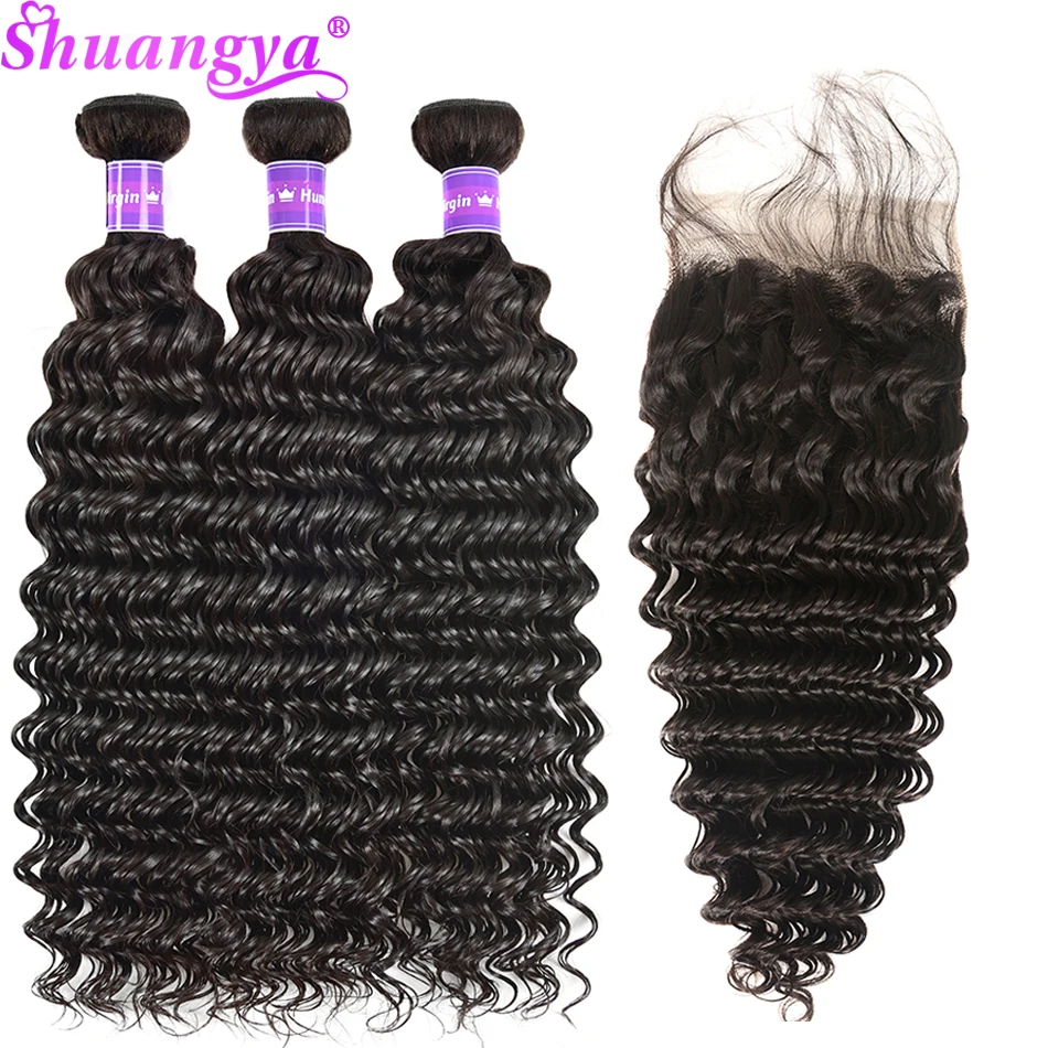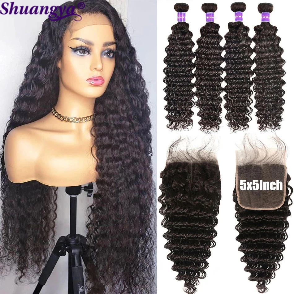Shuangya глубокая волна пучки с фронтальной 100% девственные человеческие волосы пучки с 4x4 закрытие шнурка 5X5 HD закрытие шнурка с пучками