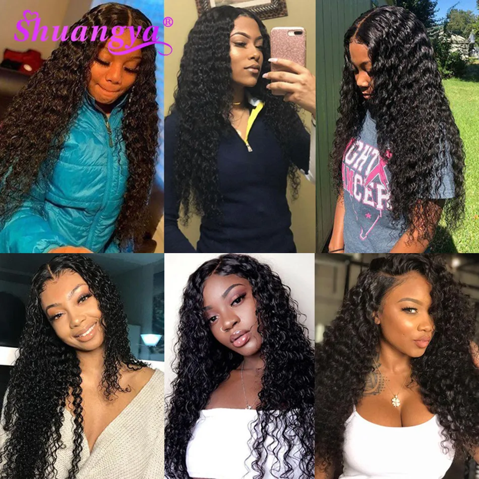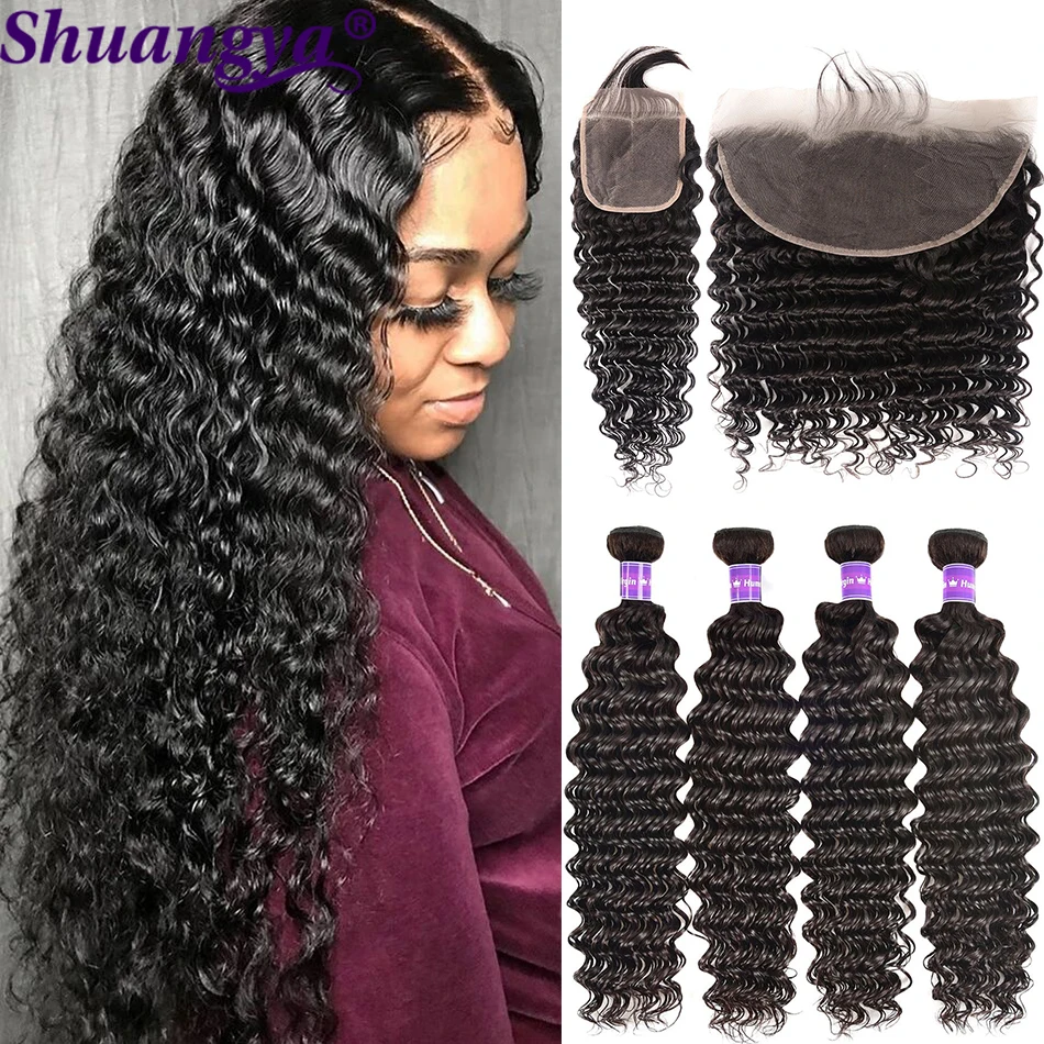 Shuangya пряди с глубокой волной с фронтальной 100% девственные человеческие волосы пряди с 4x4 кружевной застежкой 5X5 HD кружева с пряди