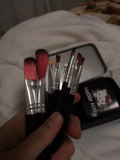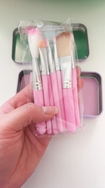 кисточки классные, Но! Одна кисточка пришла оторванная (сама кисточка была оторвана от палочки). Плюс, кисточки довольно жёсткие (я не очень люблю такие), а одна (единственная не розовая) была вовсе в клее. И мне пришлось ее отмывать под горячей водой, но эффект все ровно сильно не поменялся.
