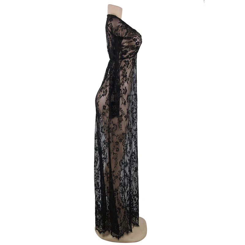 Элегантное кружевное длинное платье Ohyeahlady, сексуальное прозрачное платье макси с цветочным принтом и v-образным вырезом, Сексуальные вечерние платья, черно-белое кружевное Макси эротическая одежда