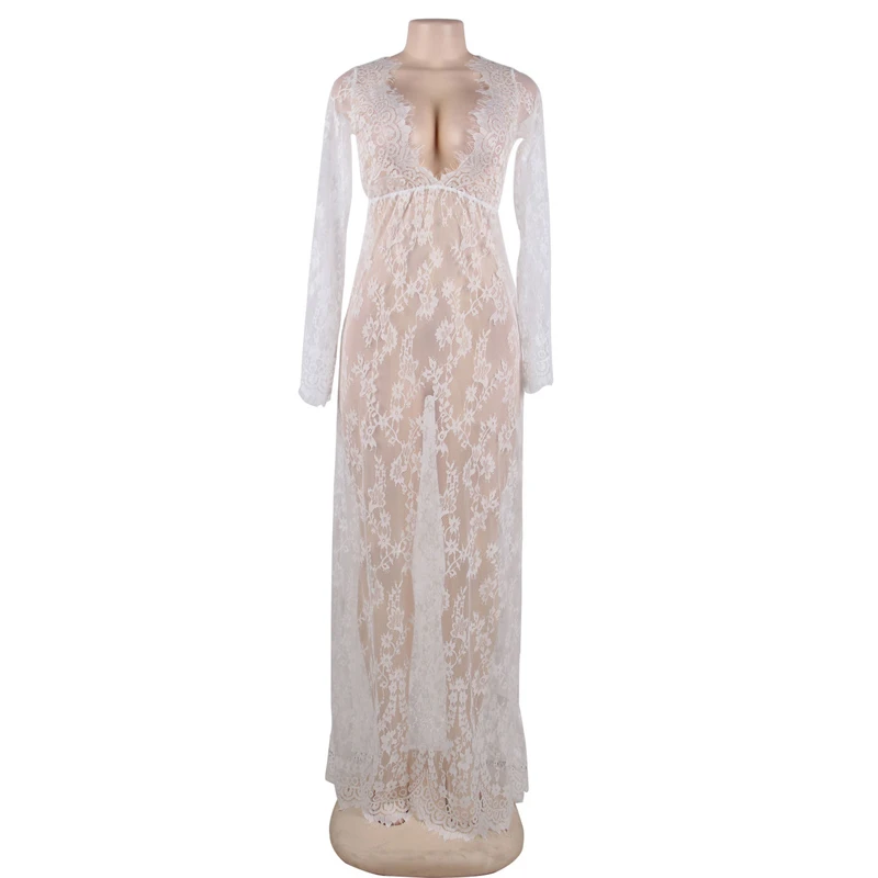 Элегантное кружевное длинное платье Ohyeahlady, сексуальное Прозрачное цветочное Платье макси с V-образным вырезом, Сексуальные вечерние платья, черное, белое кружевное макси, эротическая одежда