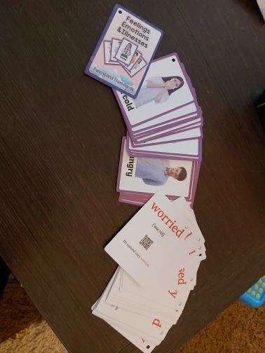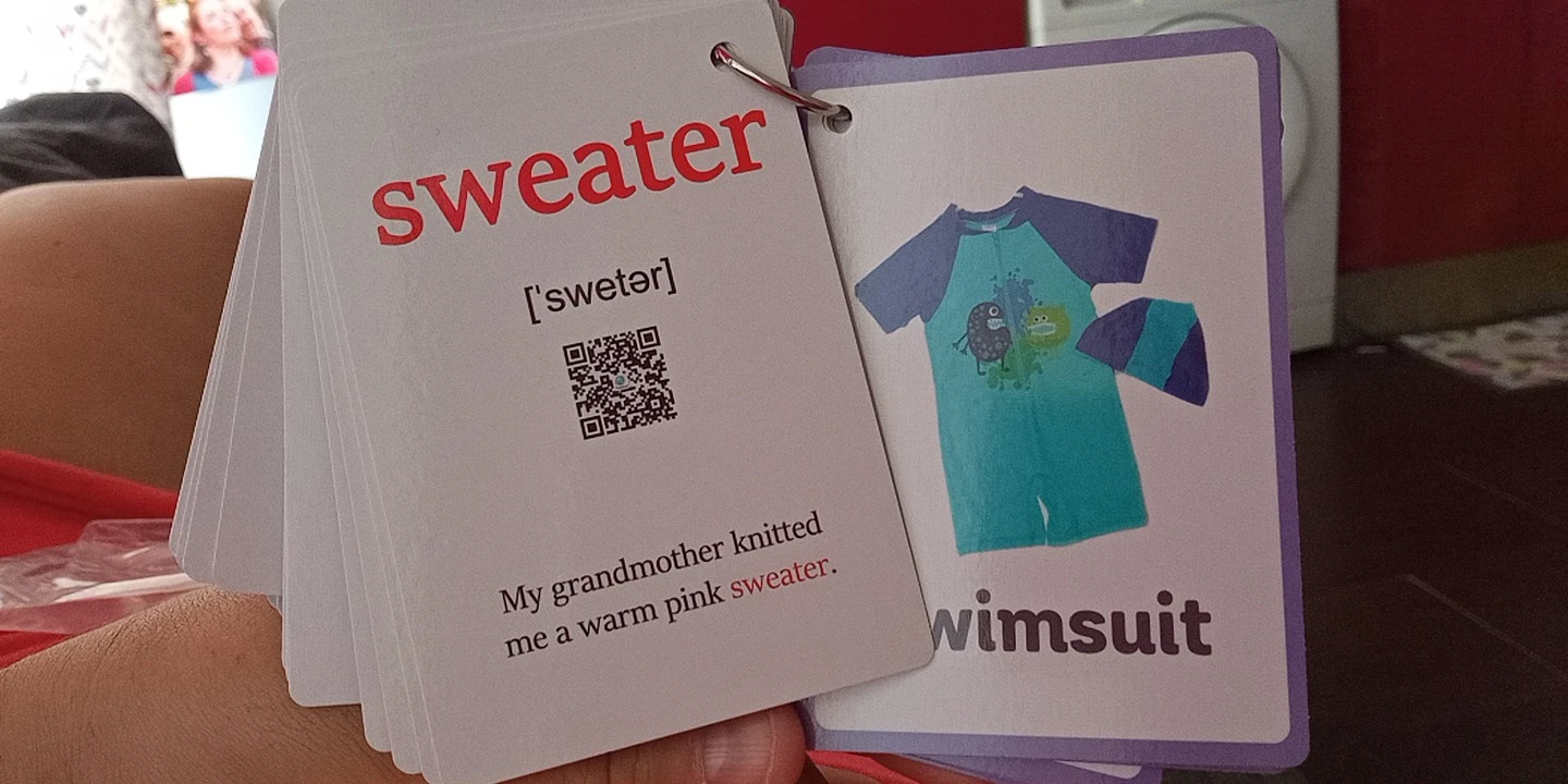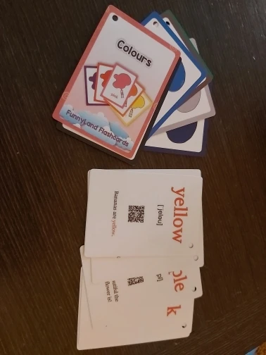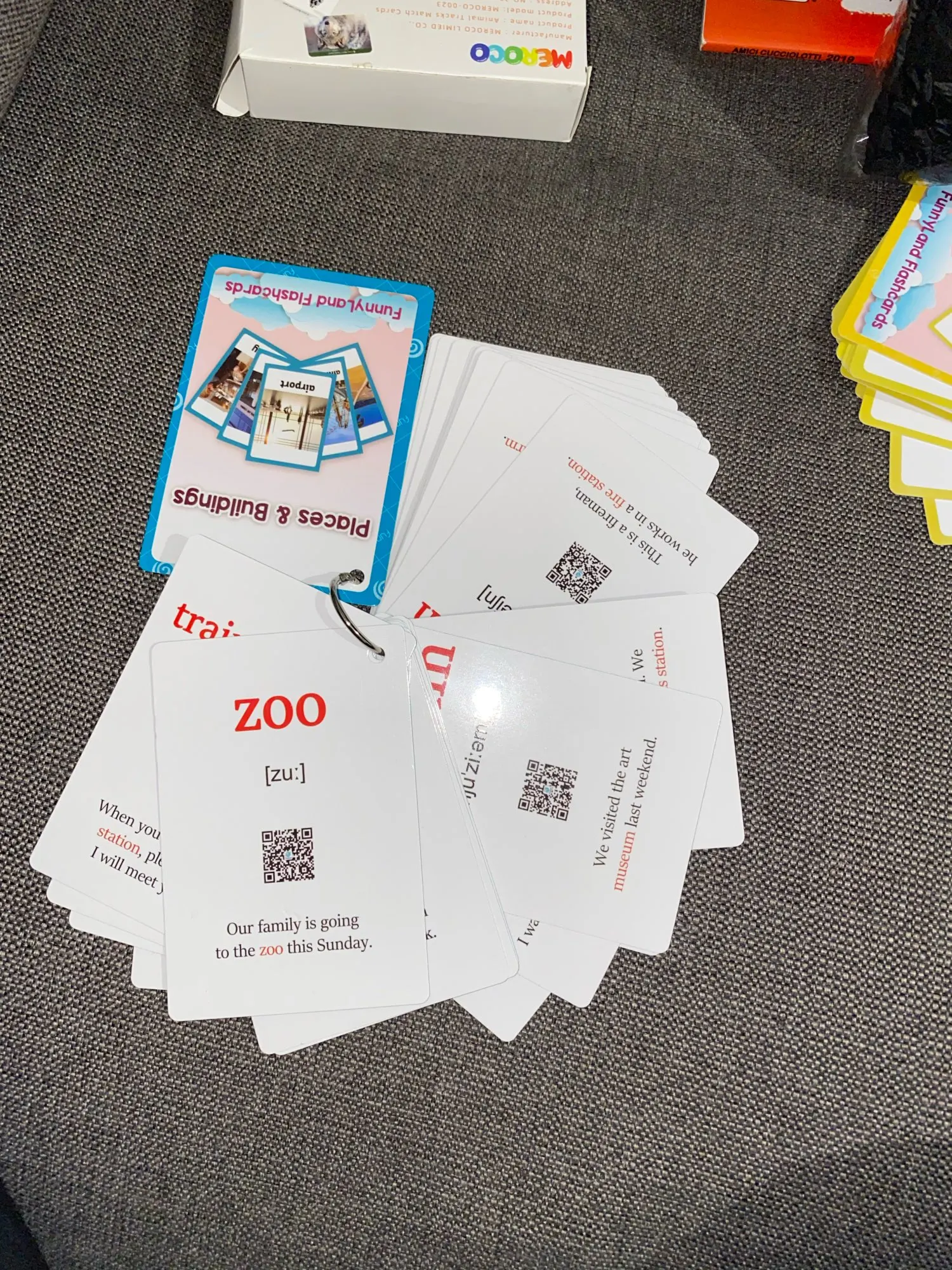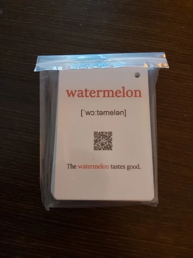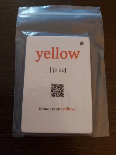 Он прибыл очень быстро, и карты очень хороши, также на спине приходит qr-код, чтобы узнать, как это произносит слово.