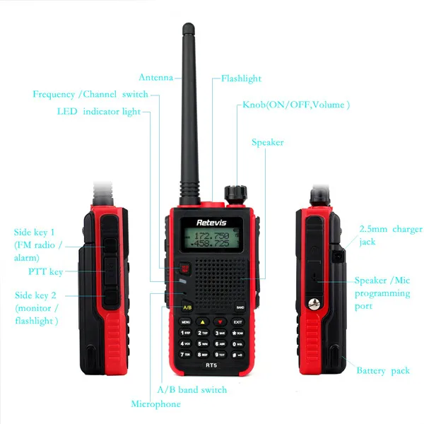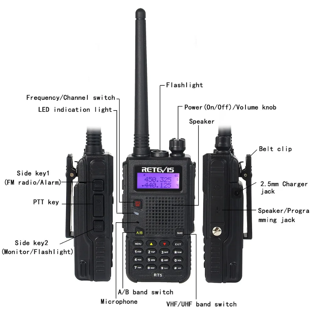 Рация Retevis RT5, 7 Вт, 128 каналов, VHF, UHF, двухдиапазонный сканер радиостанции VOX FM, любительская радиостанция, коммуникатор, трансивер