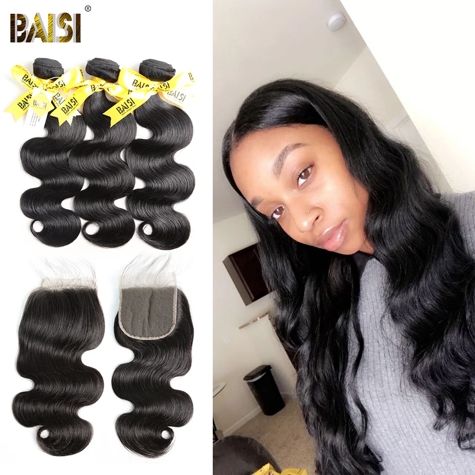 BAISI 100% необработанные человеческие девственные волосы перуанские девственные волосы объемная волна 3 пряди с закрытием натуральный цвет бесплатная доставка.