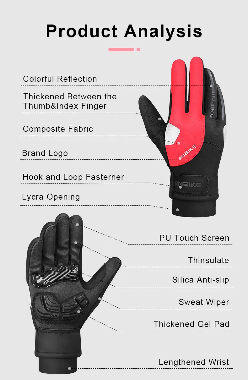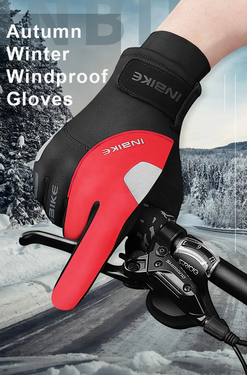 Ветрозащитные зимние велосипедные перчатки INBIKE, сенсорный экран, спортивная лампа, теплые мужские горные велосипеды