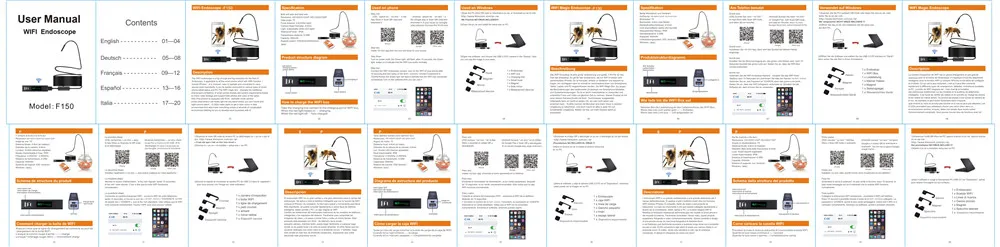 8 мм 2MP водонепроницаемый IP67 WIFI эндоскоп 1M2M3,5 M5M10M опцион...