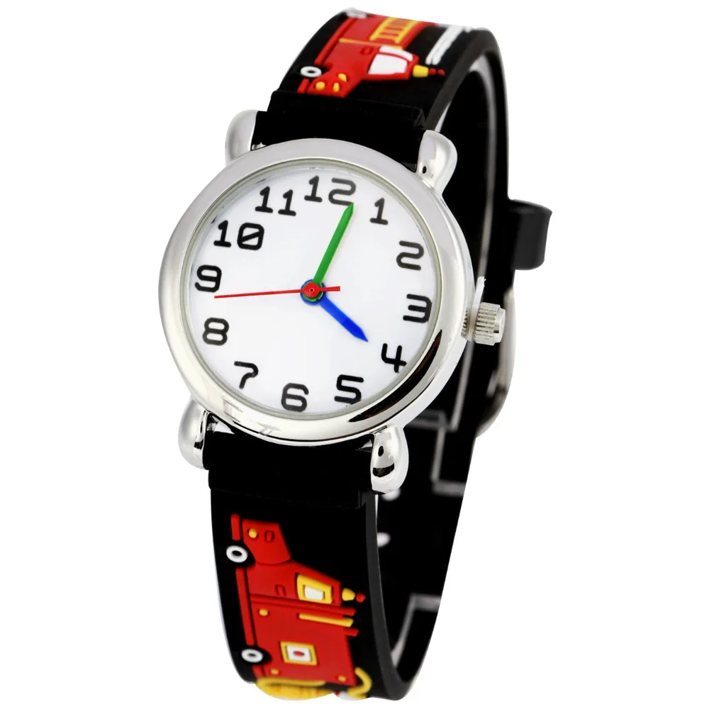 PENGNATATE 3D мультфильм пожарная машина часы для мальчиков модные Студенты детский подарок Детские Кварцевые часы силиконовый браслет наручные часы