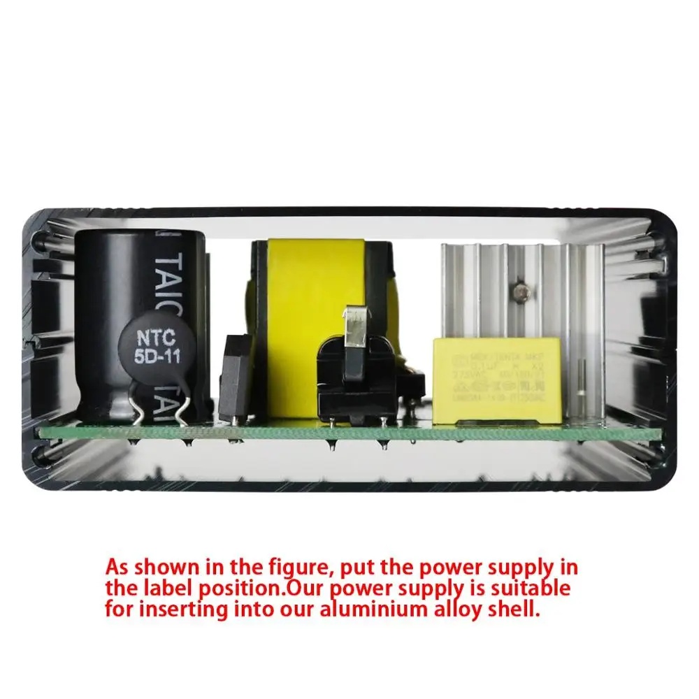 Пожалуйста, подготовьтеИзоляционная доска самостоятельно, если вы выбираете корпус из алюминиевого сплава и блок питания вместе, потому что если вы не используете изоляционную панель, источник питания коснется алюминиевого корпуса, может быть сломан (корпус и источник питания также металлические)