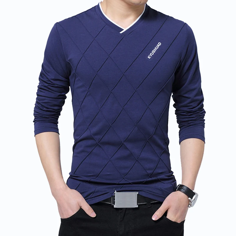 TFETTERS модная мужская футболка, приталенная, длинная, стильная, с V-образным вырезом, для фитнеса