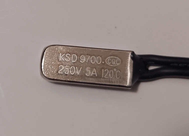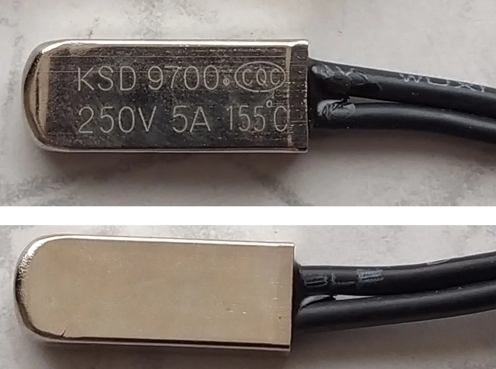 Всё отлично, термостатом доволен. Маркировка на корпусе: KSD 9700 250V 5A 155C. Контакты - "нормально замкнутые" (фото 4), при нагреве до 150С - размыкаются. Внешний металлический корпус гальванически связан с контактной группой (пример на фото 5), по этому изоляционный кембрик (идущий в комплекте) обязателен при напряжении опасном для жизни. В слаботочных цепях, с низким напряжением, можно при желании устанавливать и без кембрика, если схемотехника позволяет. Вес реле 2,6г, а вместе с кембриком 3,2г. Корпус в толщину 3,6х7,5мм. Термостат приехал в пупырчатом почтовом пакете-конверте. Товар выслали в день заказа, доставка заняла 17 дней. Быстрая доставка получилась, скорее всего, из-за объединения этого заказа с моими другими посылками.
