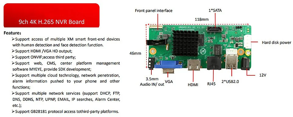 Сетевой цифровой видеорегистратор 9CH * 4K H265 NVR IP камера ONVIF 2,4 VMS XMEYE адаптер питания 1 SATA Max 12 ТБ P2P датчик движения
