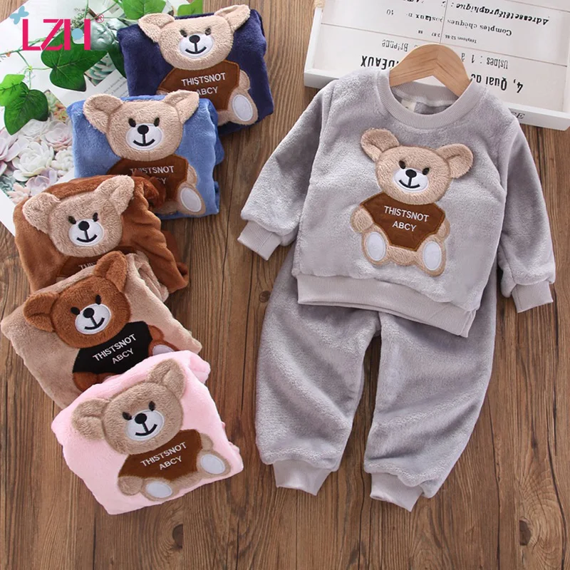 Модная одежда для младенцев зимний фланелевый теплый костюм для мал...