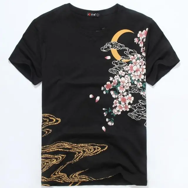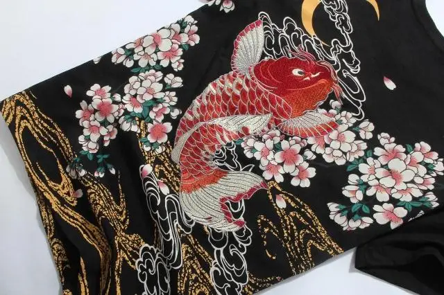 Футболка унисекс в японском стиле Ukiyoe, летняя Этническая футболка высокого качества с вышивкой карпа и рыбы, топы, модные футболки, Бесплатная доставка