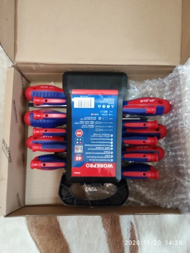 посылка пришла в течение 10 дней, все супер, набор очень хороший. брал в 11.11. за 500 с чем-то.. очень доволен, для дома идеальный набор, думаю и для работы пригодиться, так как я работаю электриком. ручки прорезиненные, даже звёздочки идеально обточенные, подойдут для мелких винтов. покупка этого производителя уже не первая, так что советую. тем более за такую цену ни где такого качества набор не найдешь. доставка была до квартиры, предварительно отзвонился доставщик.