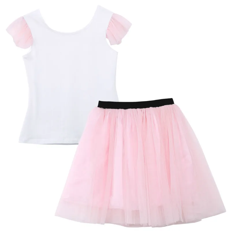 Одинаковые комплекты для семьи комплекты с юбкой для маленьких девочек футболка без рукавов для мамы и дочки мини-юбка-пачка из тюля белый и розовый цвет