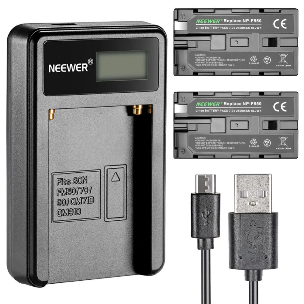 Neewer Micro USB Батарея Зарядное устройство + 2 шт в комплекте 2600 мАч, NP-F550570530 Замена батареи для sony HandyCams Neewer Nanguang CN-16