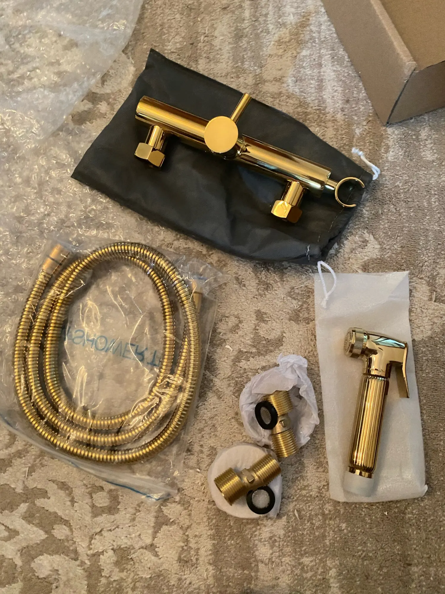 Золотистый настенный ручной спрей для Биде Shattaf Душ Комплект распылитель + горячий и холодный смеситель клапан 02-014