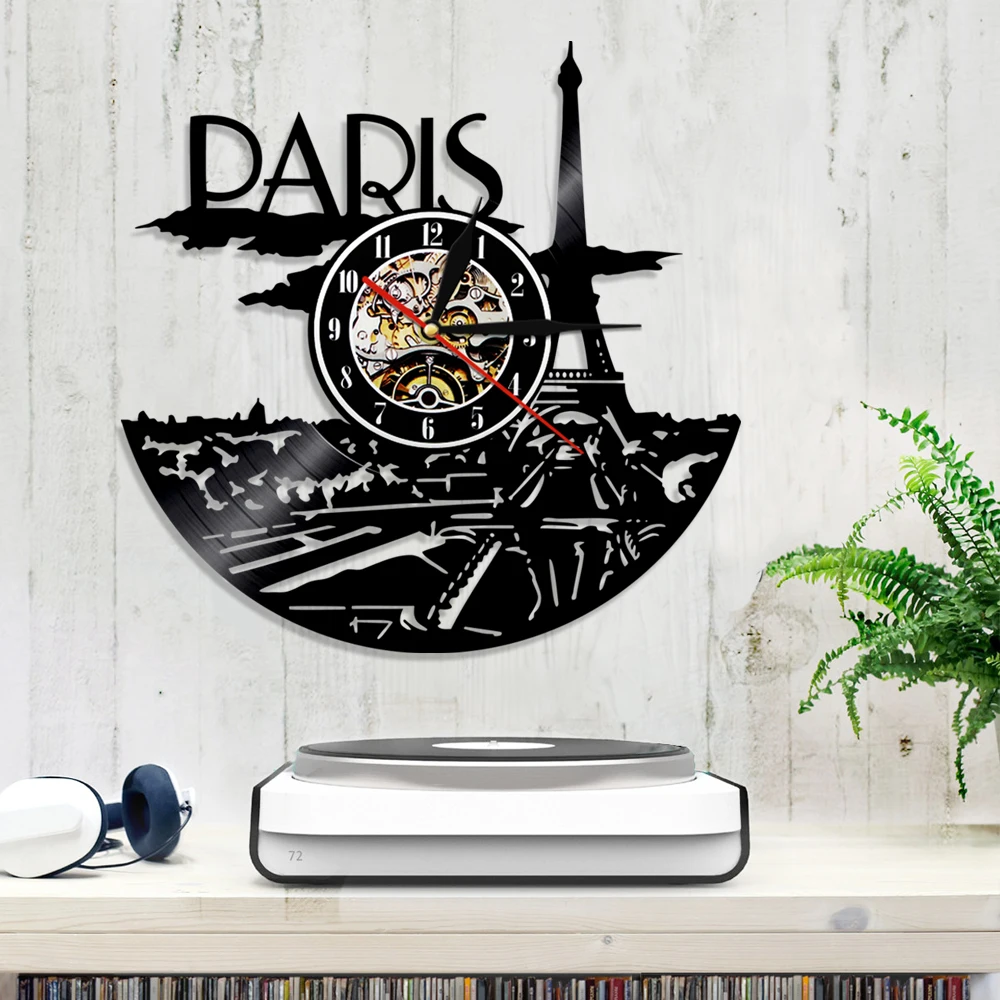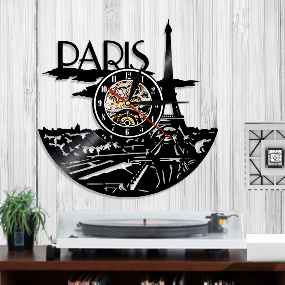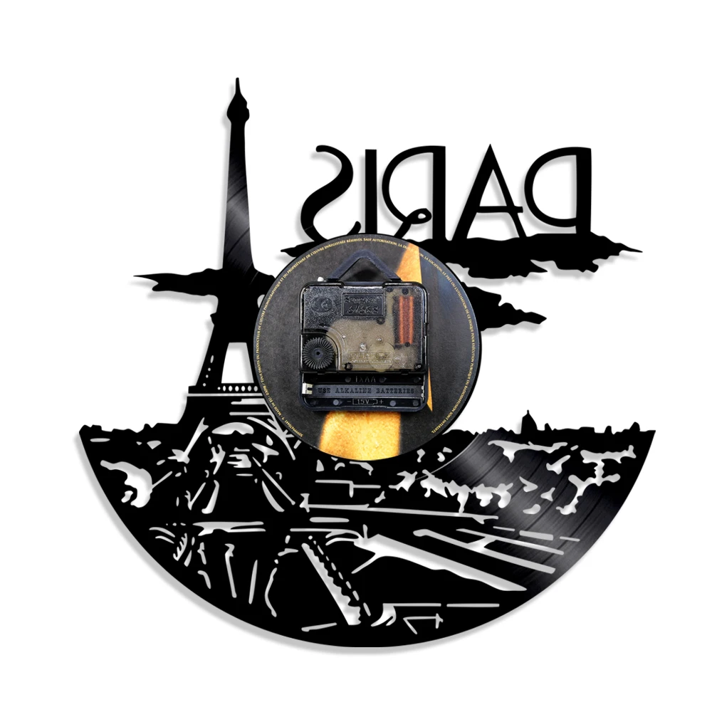 Французский Париж, Эйфелева башня, ретро виниловая пластина, настенные часы, французский городской пейзаж, лазерная резка, ручная работа, виниловый диск, часы