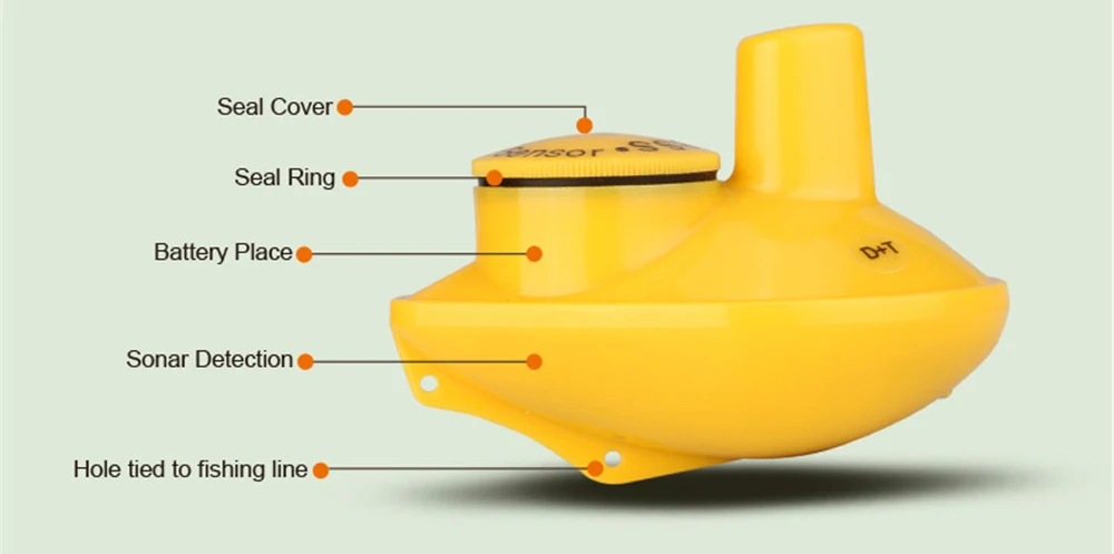 1. Герметичная крышка2. Уплотнительное кольцо3. Место батареи4. Обнаружение сонара5. Отверстие, привязанное к леске