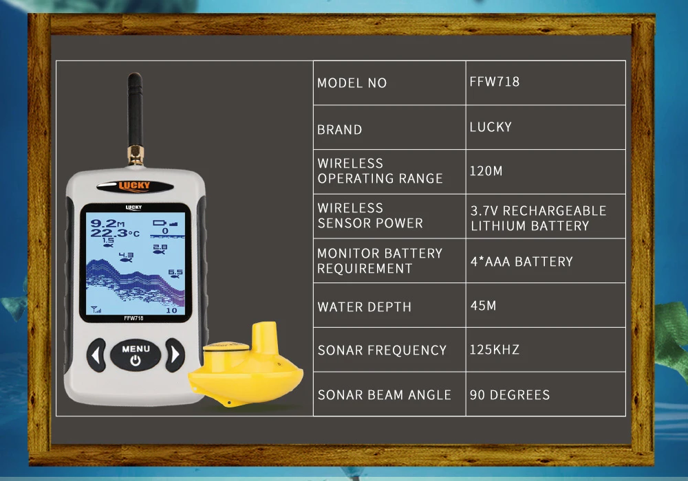 Эхолот-рыболокатор Lucky FFW718, беспроводной, с ЖК-дисплеем, дальность работы 120 метров