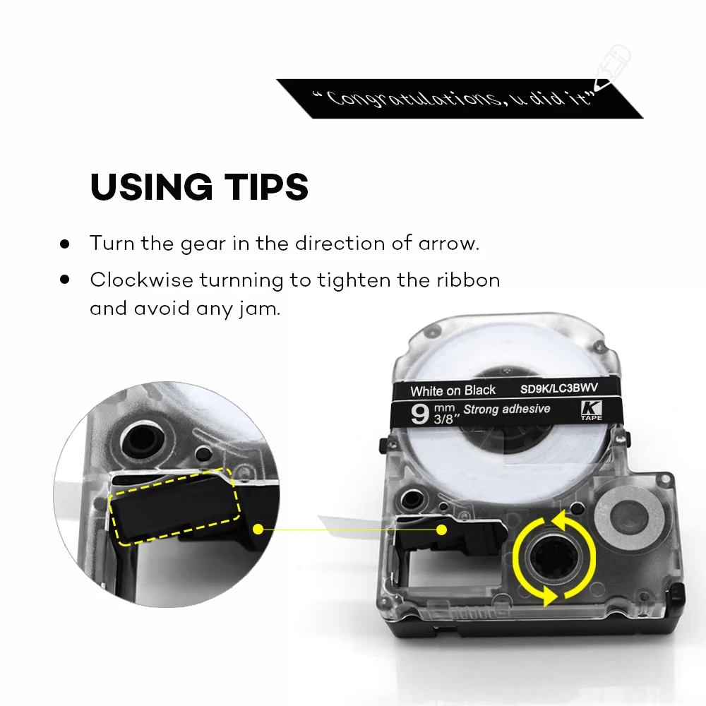 CIDY 9 мм белая на черном SD9K SD9KWLC3BWV прочная фотолента для производителя этикеток kingjimepson LW300 LW400 SR150