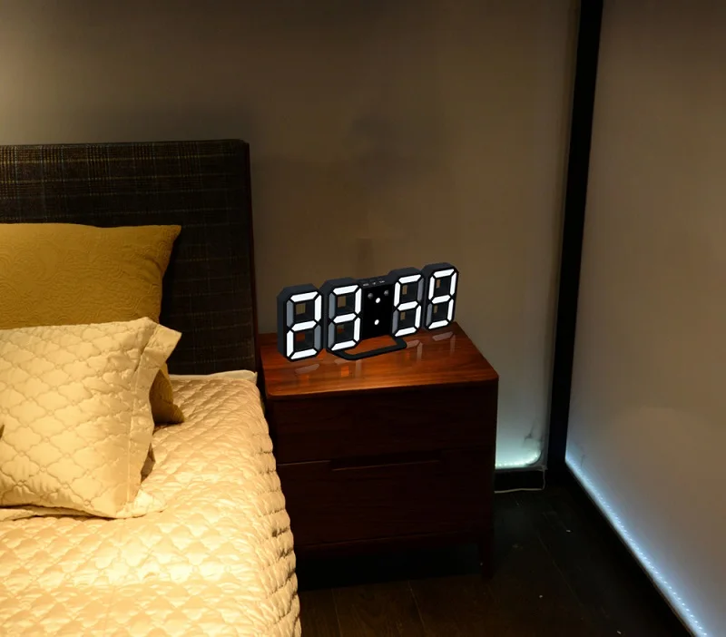 Настольные Цифровые часы 3D, светодиодный Будильник с функцией повтора для спальни, настенные часы с дисплеем 2412 часа, 8 цветов, украшение для дома