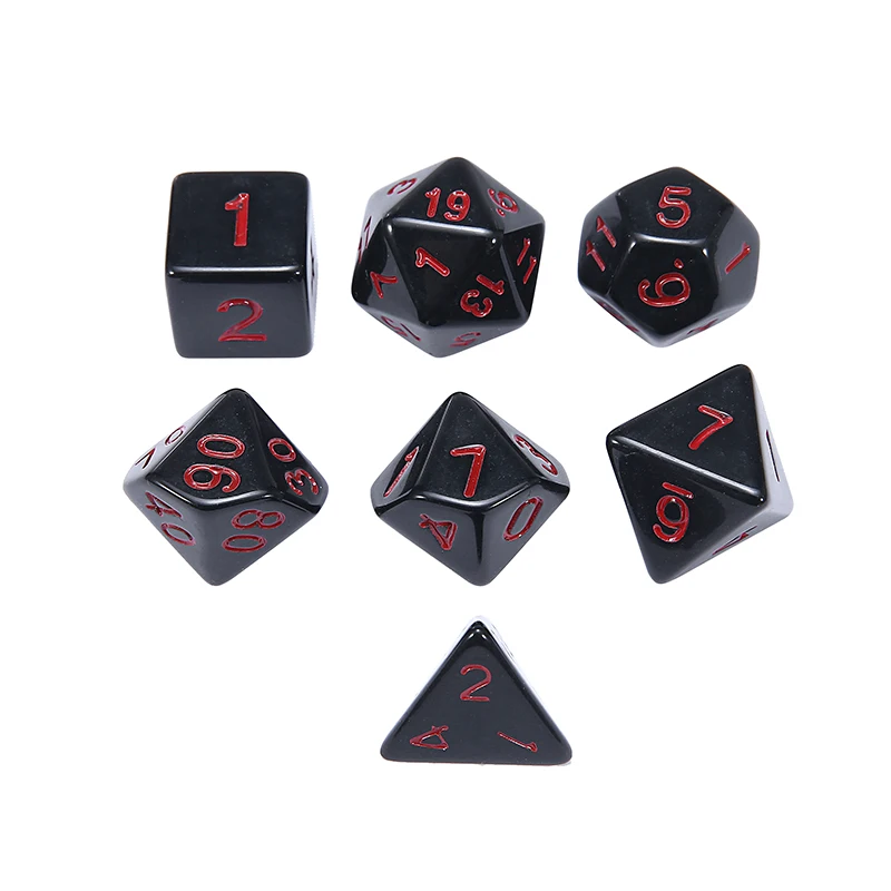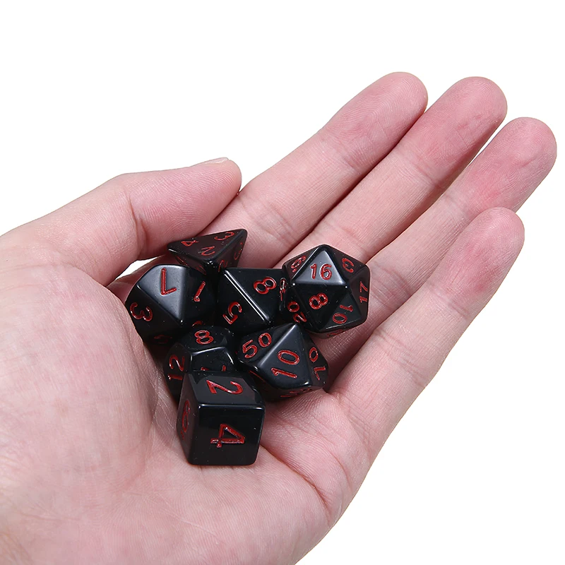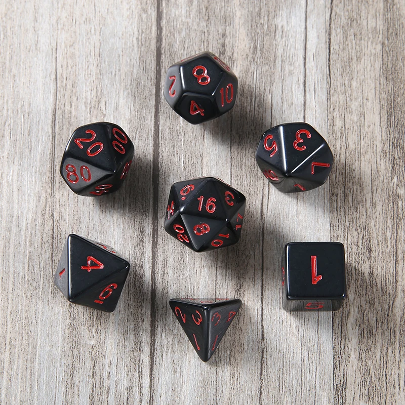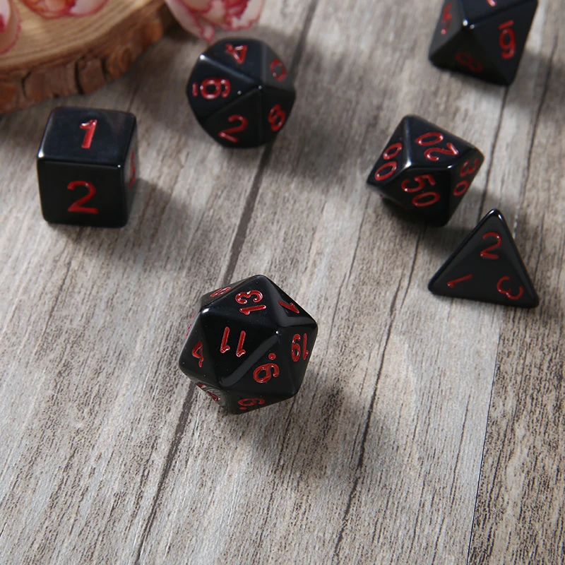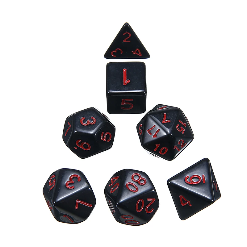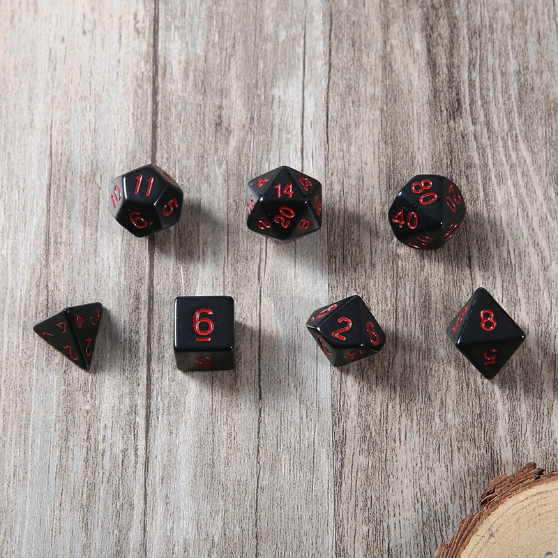 Черные многосторонние игральные кости D20 D12 D10 D8 D6 D4, 7 шт.