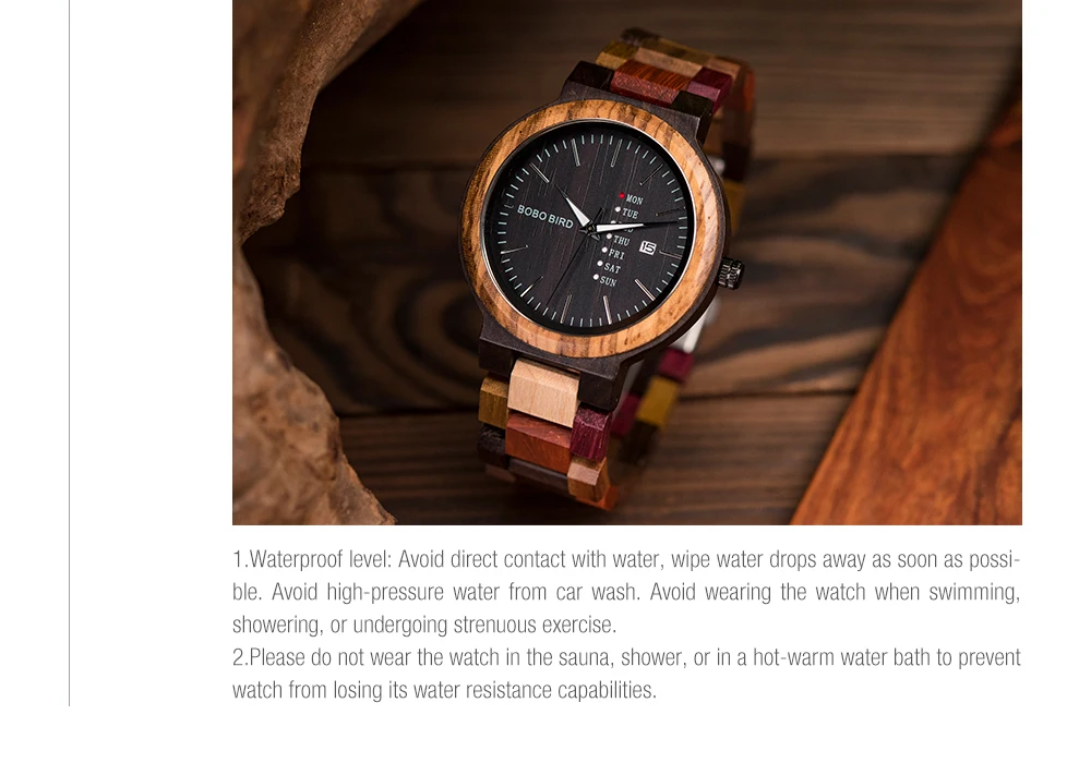 Цена указана за одиночные часыАвто Дата деревянные часы, легкийКварцевые наручные часы с отображением недели,Двухцветный деревянный браслет,Быстрая доставка и хорошая упаковкаБыстрая доставка со склада СШАИнструменты включают в себя настройку лентыМожет выгравировать ваш логотип на часах в любом месте.