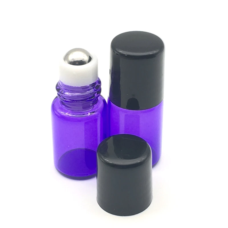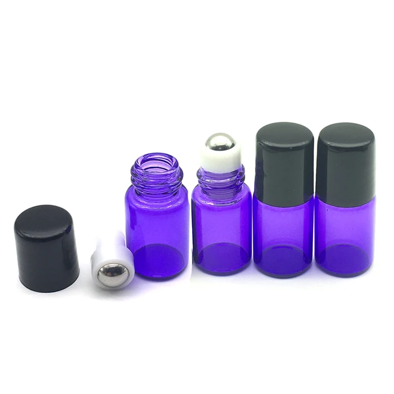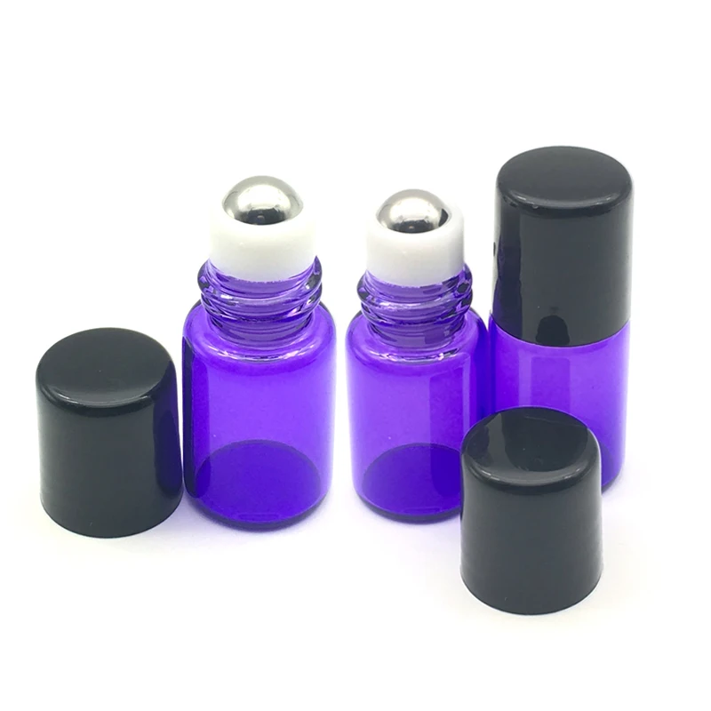 Фиолетово-синяя стеклянная бутылка, рулон на пустой аромат, парфюмерная бутылка эфирного масла, 2 мл, рулон, черная пластиковая крышка, бутылка