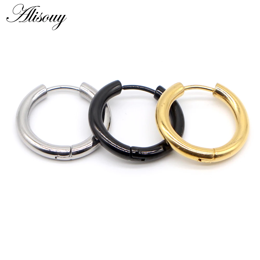 Alisouy 1 шт рок серьги-кольца из нержавеющей стали Huggie простой стиль круглые серьги-кольца серьги для женщин и мужчин 3 мм цвет черный
