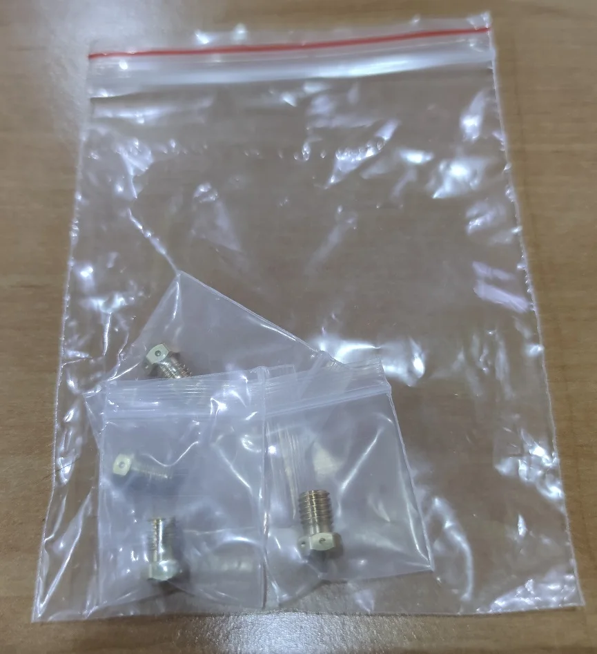 Брал несколько диаметров разом. Каждое сопло в отдельном пакетике, однако диаметр не подписан. Мелочь, но не приятно, надеюсь в дальнейшем учтут.