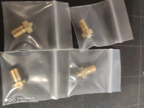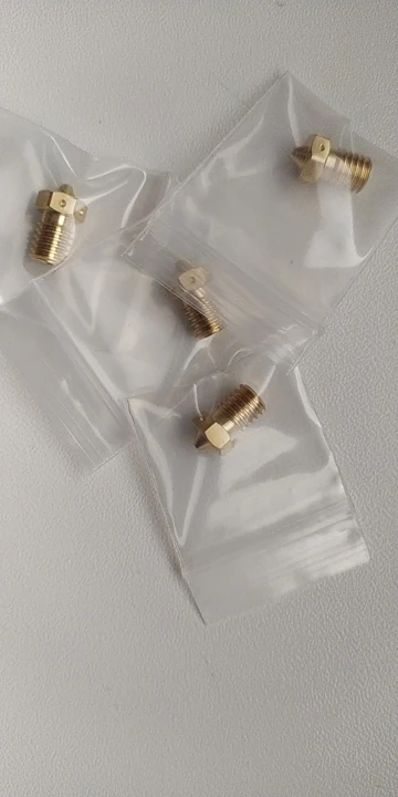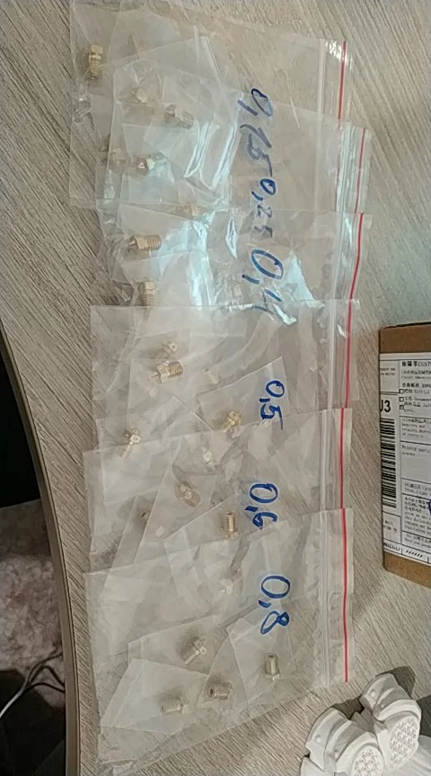 Сопла прикольные, маркировка точками, внешняя обработка выше всяких похвал, сама фильера ИДЕАЛЬНО круглая на выходе, внутри сопло полированное(?). Во всяком случае так через увеличилку рассмотрел. Зазубрин и заусенцев нет, на просвет никаких замечаний. Пришло быстро по меркам доставки с али. Другие (дешевые сопла) рядом смотрятся как отбраковка, а раньше думал нормальные...