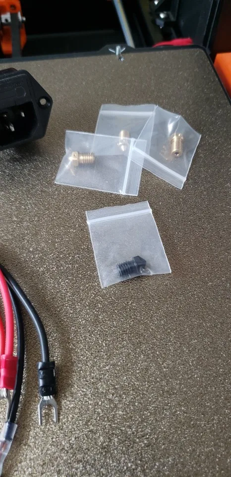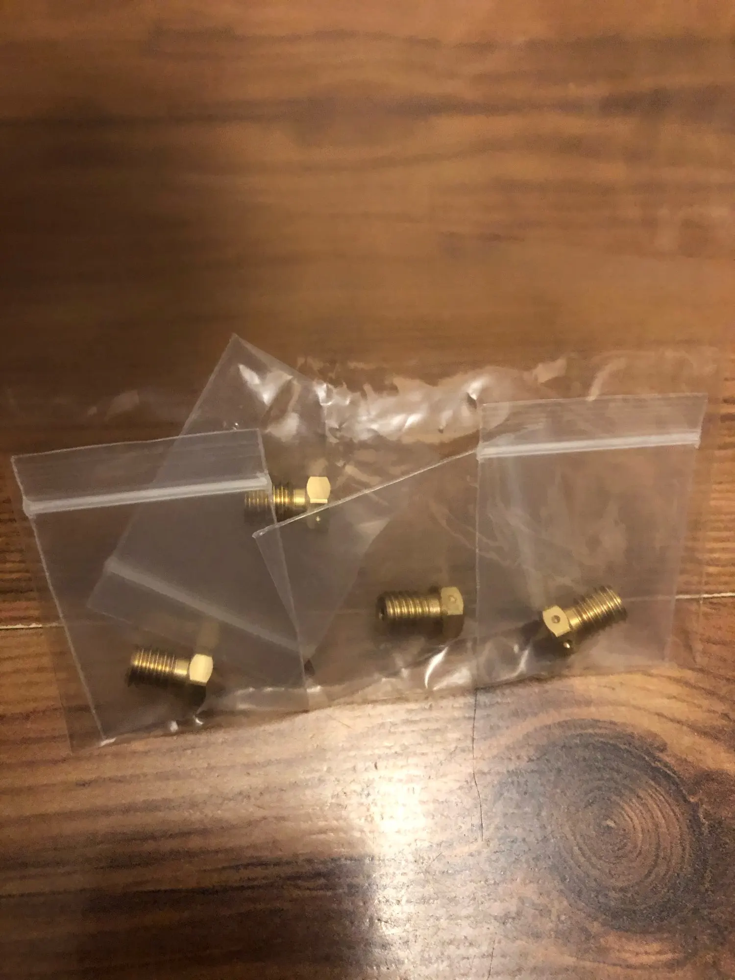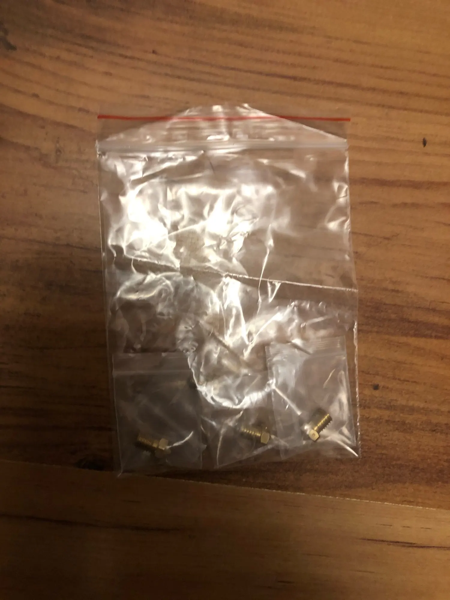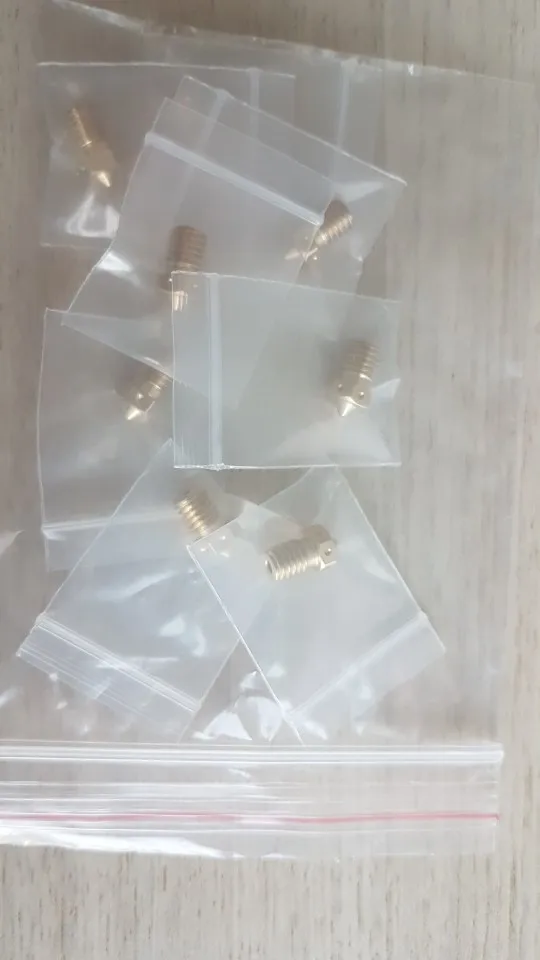 заказывал одним заказом сопла на 0.4 и на 0.25. все пришли в 1 пакете в перемешку, что не очень удобно. доставили быстро, меньше месяца что в праздничные дни вызывает уважение.