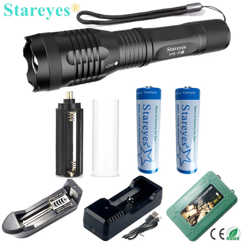 Новейшая версия, супер яркий светодиодный фонарь на 4 лм, светодиодный фонарь с масштабированием + перезаряжаемый аккумулятор 18650 5000 мач + зарядное устройство