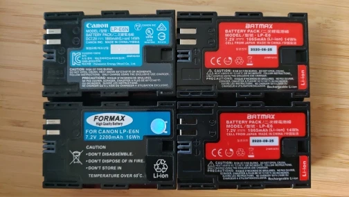 Батареи на Canon R работают хорошо, по весу от оригинала не отличаются(76гр). Зарядка удобная, но нужен помощнее адаптер.