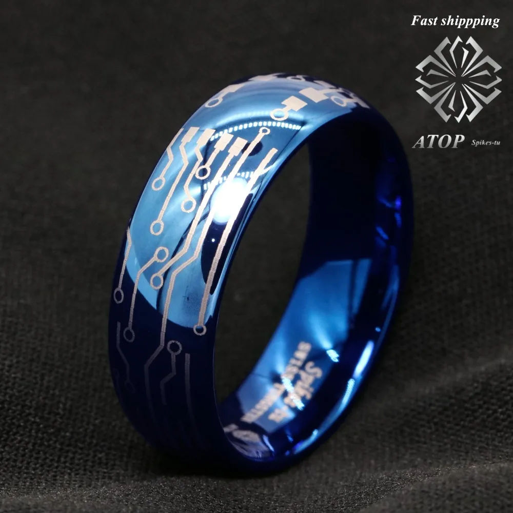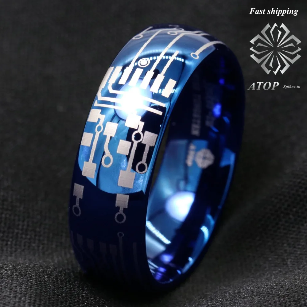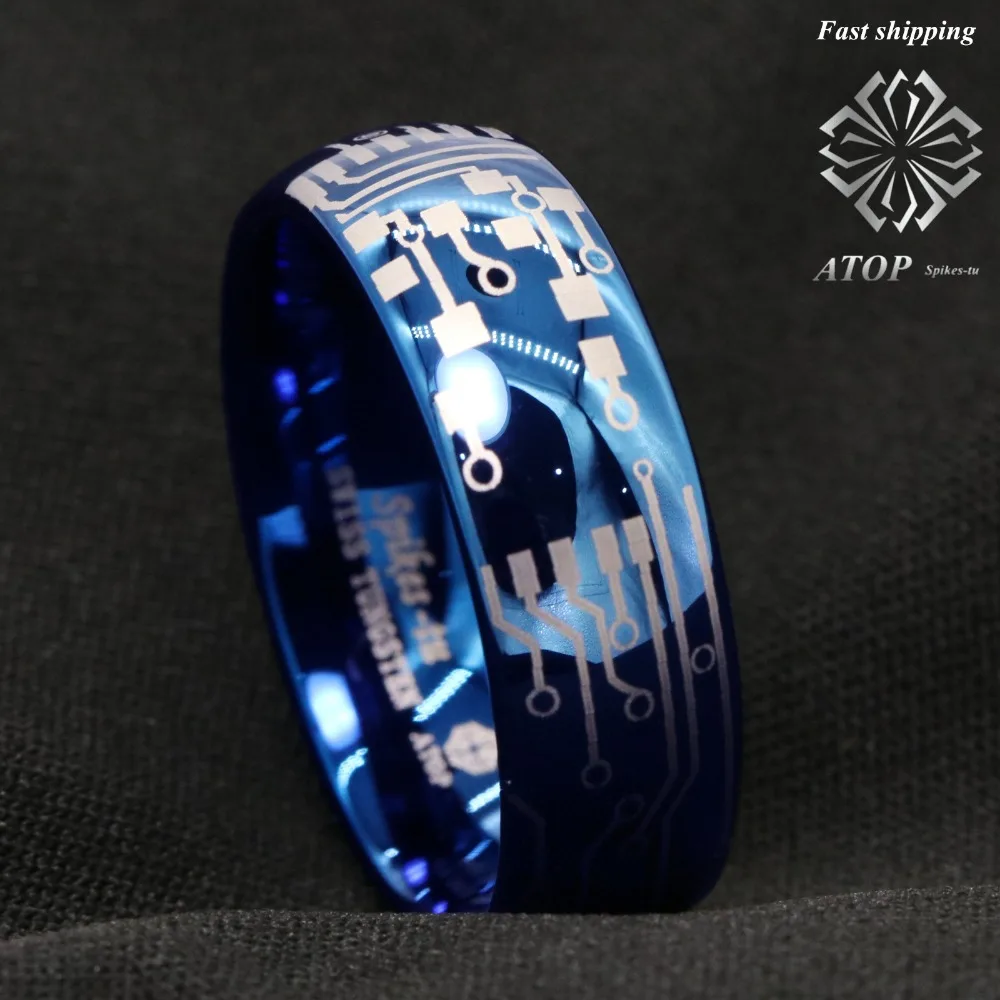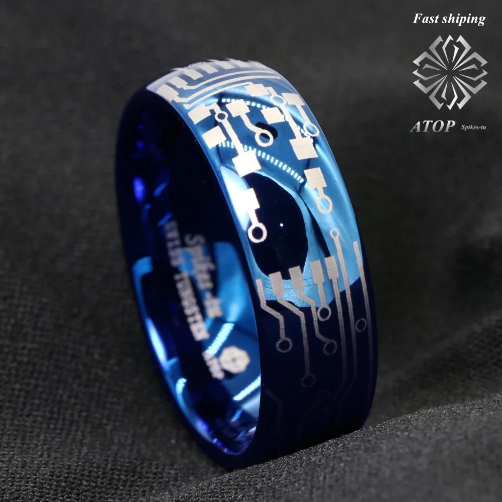 Кольцо из карбида вольфрама с синим куполом, 8 мм, лазерная печатная плата, мужские украшения, бесплатная доставка